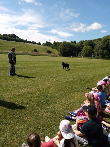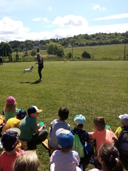2.6.2022 sme sa na štadióne na cvičnom ihrisku mohli pozrieť, ako sa robí výcvik psov. Videli sme aj šampiónov, ktorí poslúchali na prvé slovo. Psy sme si mohli aj pohladkať.