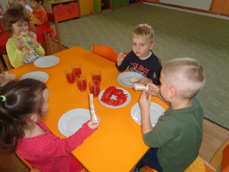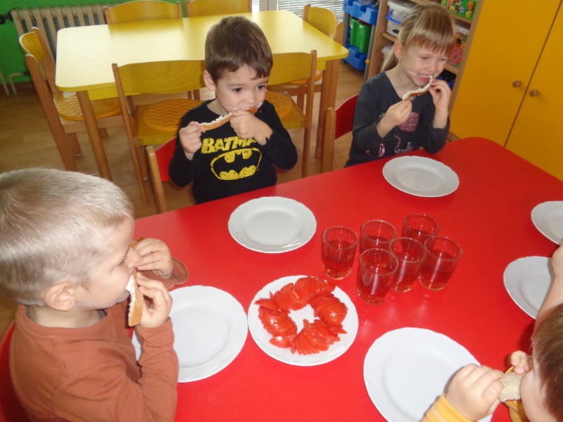 "Rajčinkové kráľovstvo" - poznávali sme, na čo všetko môžeme použiť rajčiny a samozrejme sme ich ochutnávali.