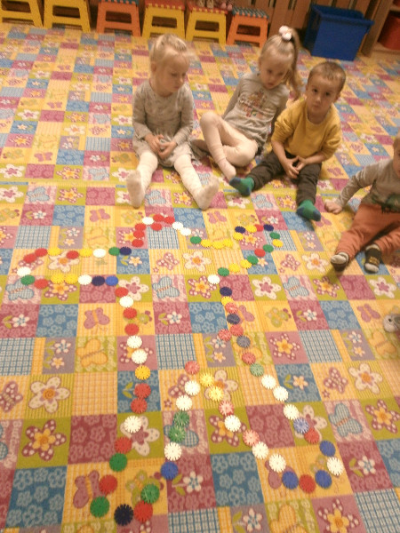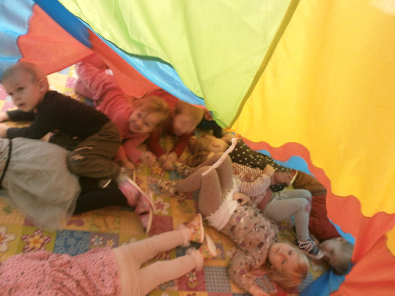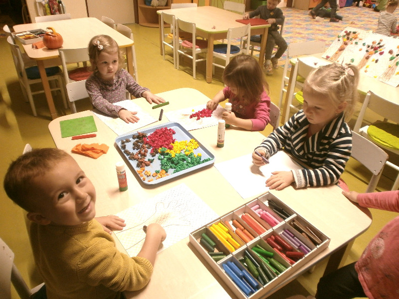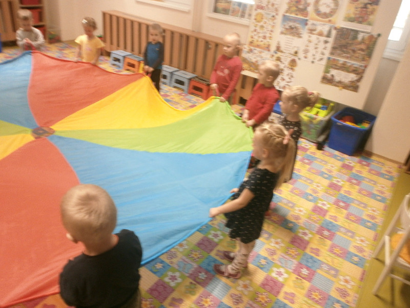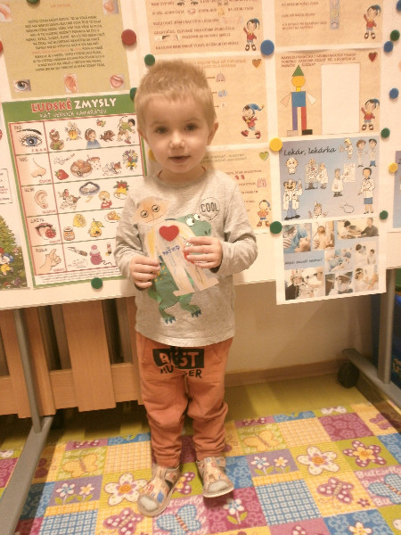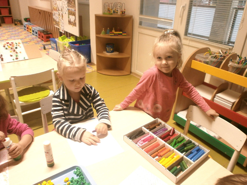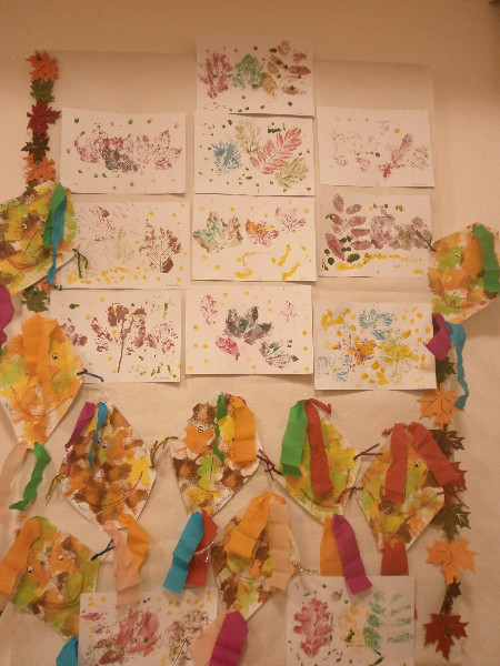 Farebný jesenný čas naši najmenší prežili veselými hrami, šantením na čerstvom vzduchu, vychádzkami s pozorovaním pani Jesene, vytváraním nových prác v oblasti výtvarných a pracovných činností s trénovaním si jemnej a hrubej motoriky, vytváraním obrysov ľudskej postavy podľa kamarátov, zábavnými hrami s padákom, vytváraním jesenných výtvorov so svojimi rodičmi.