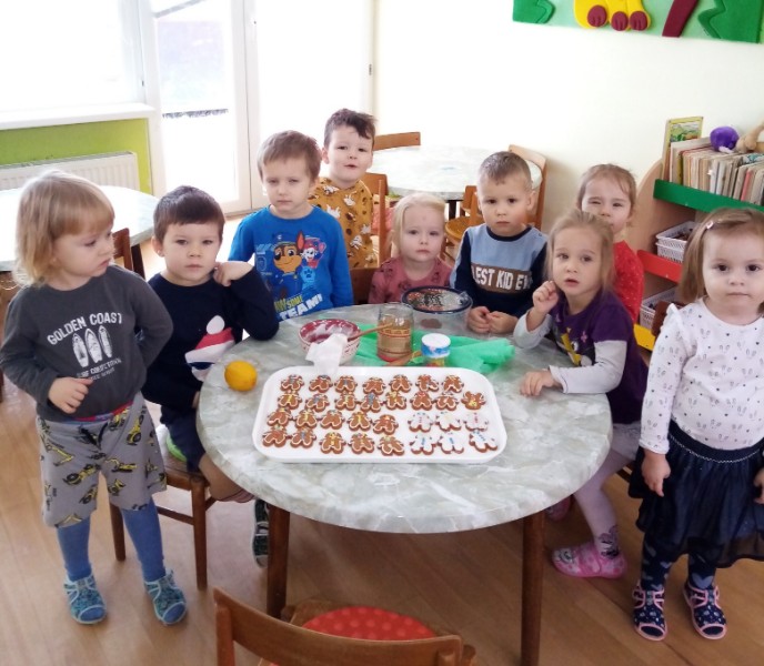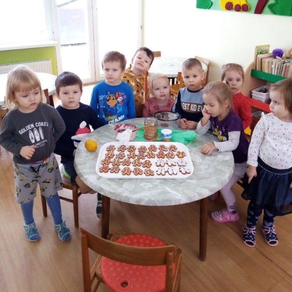 Náš prvý december sme sa pripravovali na Vianoce. Vyrobili sme čertíkov, čižmičku pre Mikuláša, vianočný pozdrav pre rodičov a dokonca sme ozdobili i perníkových panáčikov. Keď napadol prvý sneh, podarilo sa nám postaviť i snehuliaka.