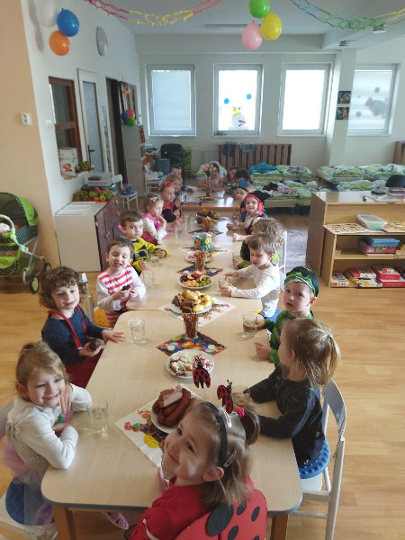 V mesiaci február sme prežili veselý karnevalový týždeň plný zábavy, boli z nás krásne masky. Zabávali a učili sme sa hrou s kamarátkou vílou v hudobno – pohybovom a tvorivom dopoludní. Nezabudli sme ani na našich oslávencov, ktorým želáme všetkom len to najlepšie.