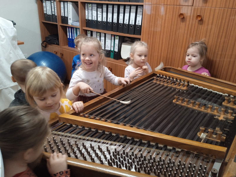 Fašiangové dni s našimi najmenšími boli naplnené hrami, zábavkami, karnevalom, ale i tancom a hudobnými nástrojmi. Na jednom veľkom cimbale si deti vyskúšali i zahrať a zároveň sa započúvali do melódie, ktorú im na cimbale zahrala p. Mareková.