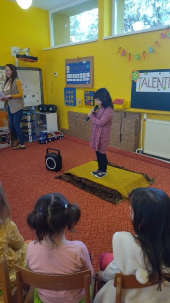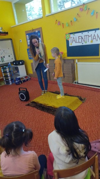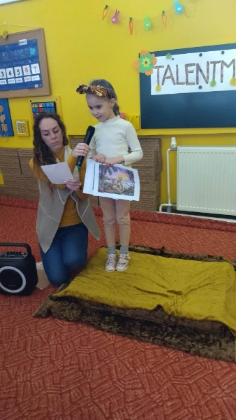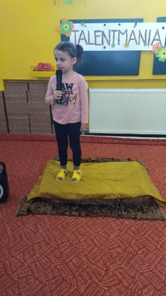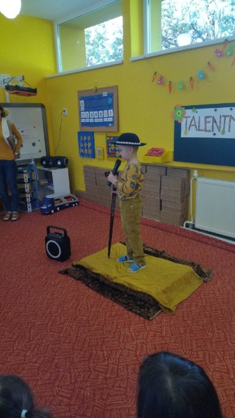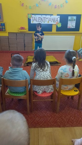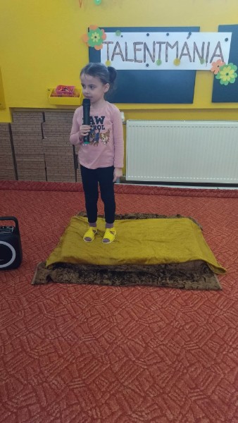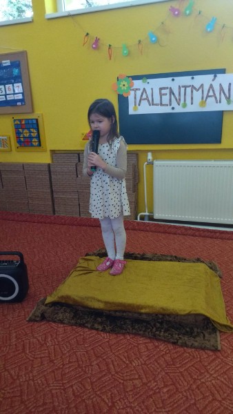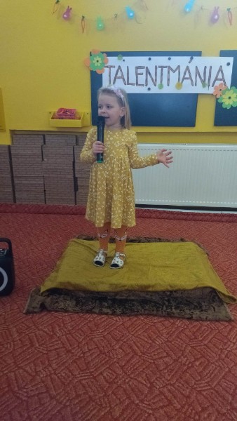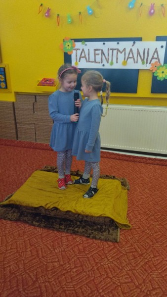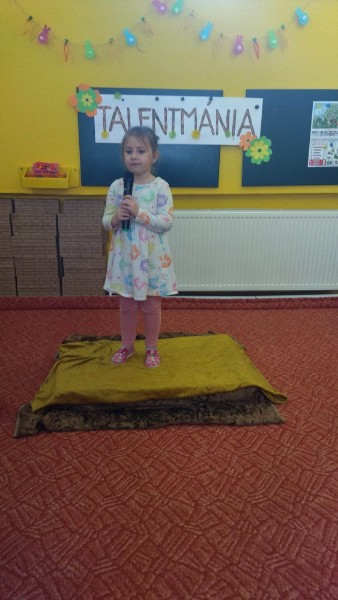 V našej triede sa na konci marca uskutočnila súťaž s názvom TALENTMÁNIA - prezentácia detského umeleckého prejavu. Deti sa doma s rodičmi mali naučiť básničku, pesničku podľa vlastného výberu. Niektorým sa veľmi pekne podarilo prekonať svoj strach, nabrať odvahu vziať si do ruky mikrofón a predviesť svoje vystúpenie pred ostatnými deťmi. Ďakujeme veľmi pekne rodinke Slamovej za poskytnutie profi karaoke zariadenia.