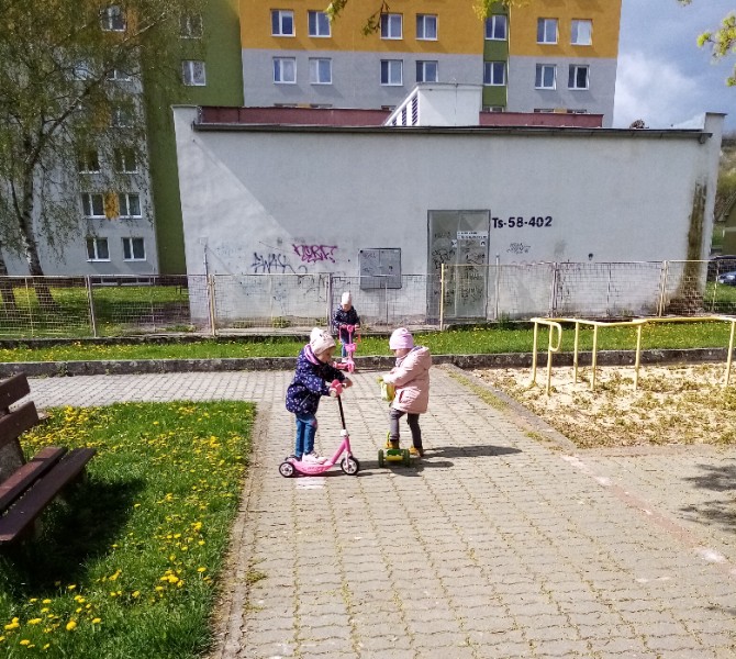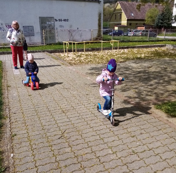 Počas týždňa dopravné prostriedky sme si vyskúšali našu šikovnosť na kolobežkách a odrážadlách.