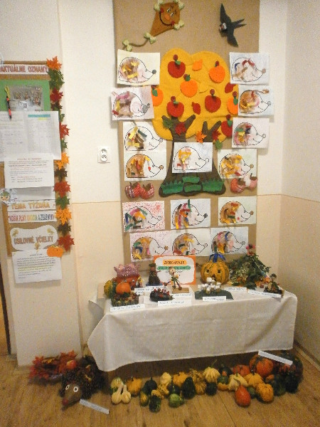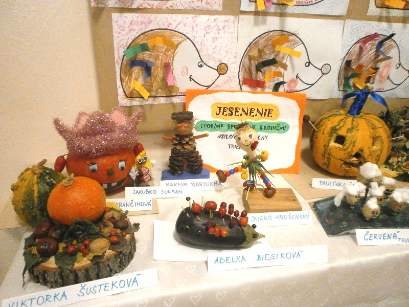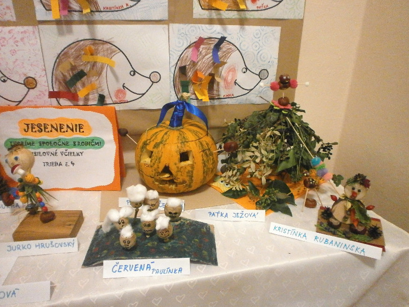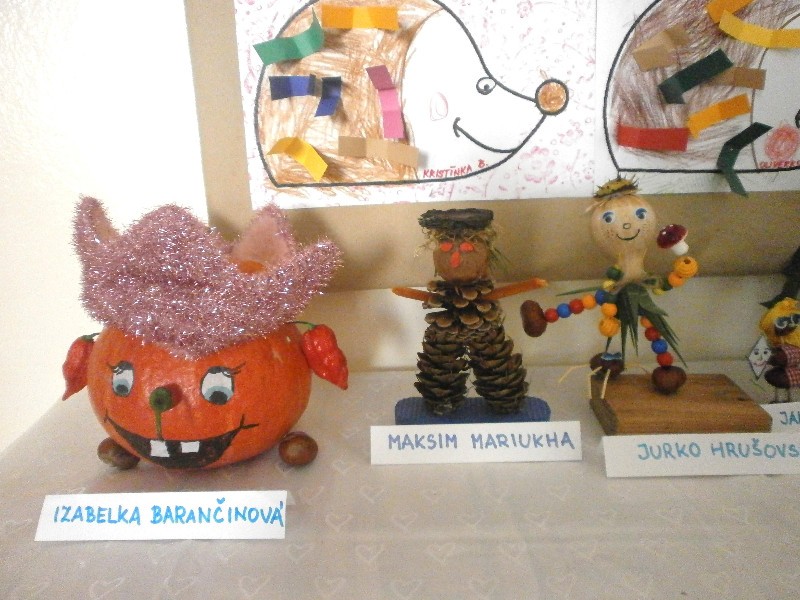 V jesennom období nám skrášlili priestor šatne krásne a kreatívne výrobky z ovocia a zeleniny, ktoré zhotovili deti spoločne s rodičmi. Deti boli na svoje výtvory hrdé a rodičom ďakujeme za aktívnu spoluprácu.