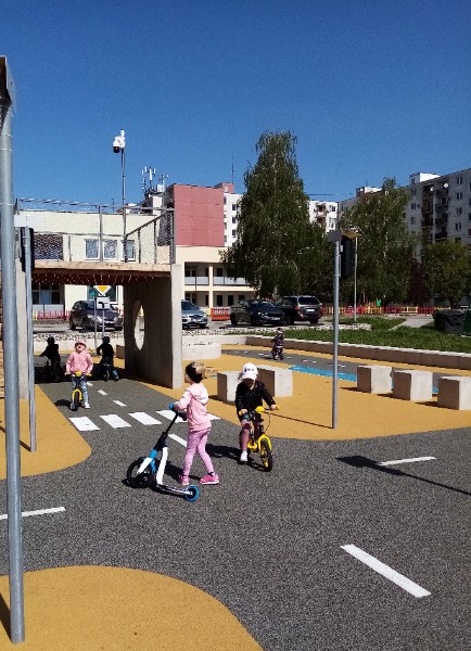 Priaznivé počasie sme využili na návštevu dopravné ho ihriska s odrážadlami a kolobežkami.