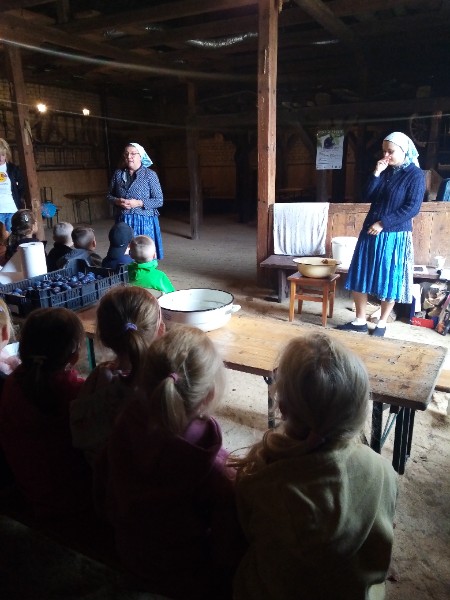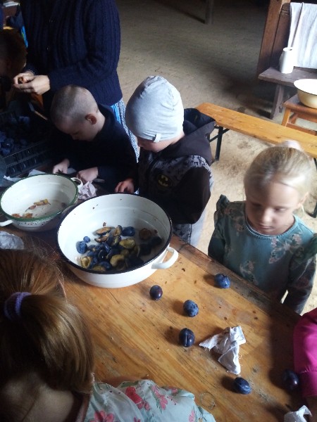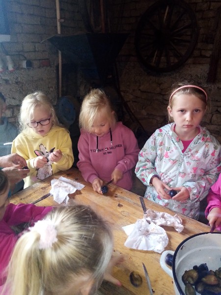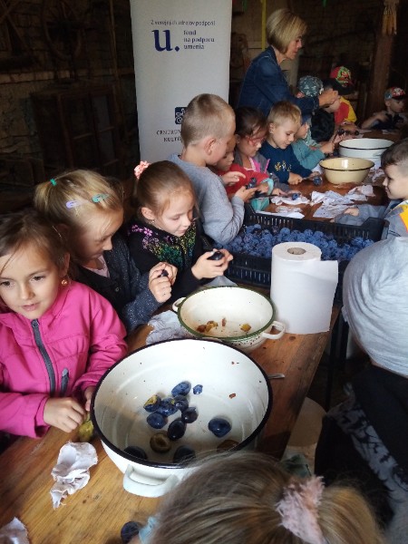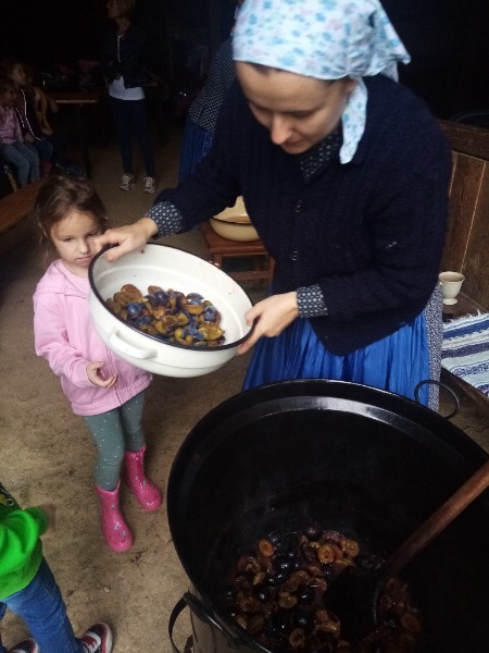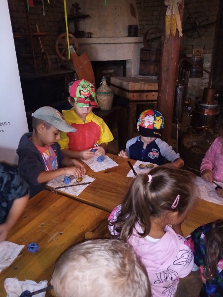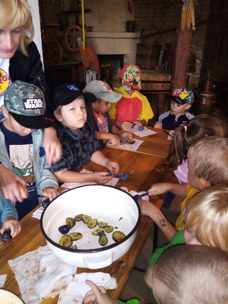 V pondelok 9.9.2024 sme sa na Gazdovskom dvore na Turej Lúke dozvedeli, ako sa varí slivkový lekvár. Keďže sme šikovné deti, odkôstkovať slivky sme zvládli celkom hravo. S gazdinami sme sa naučili tanček "Šla Anička do zelí" a nakoniec sme si pochutili na lekvárom chlebíku.