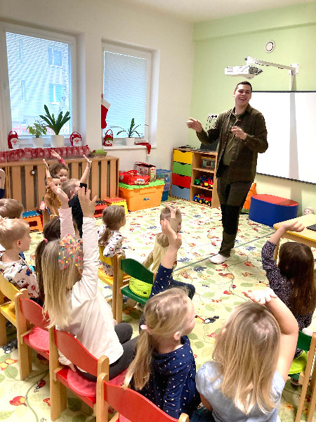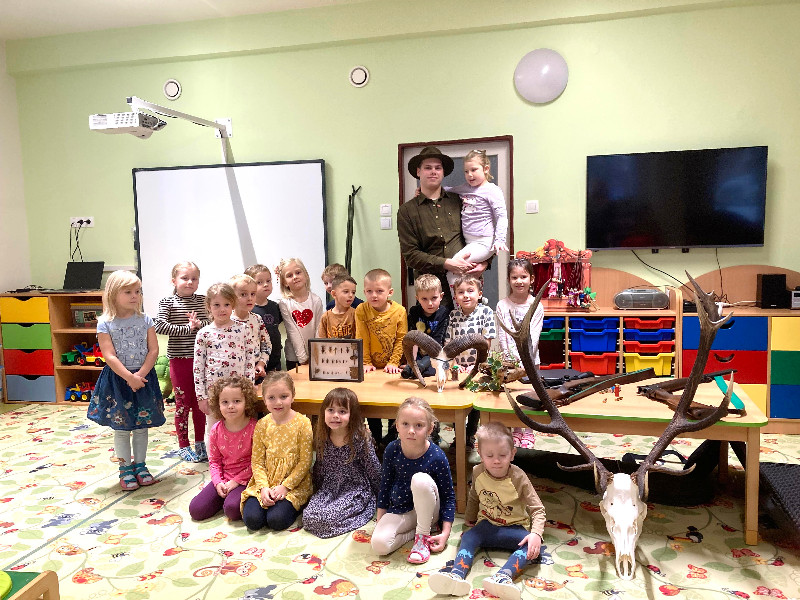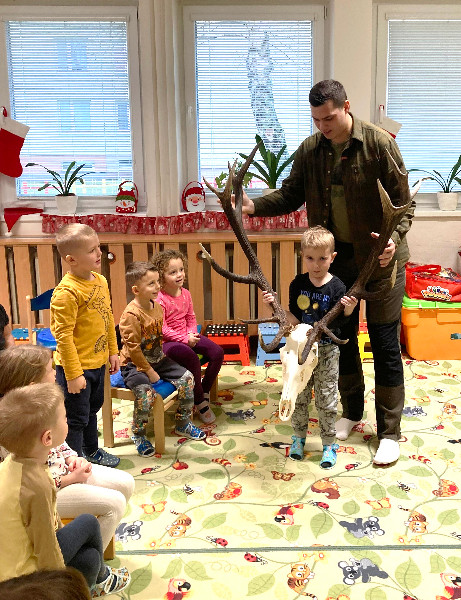 Navštívil nás brat našej usilovnej včielky Elišky Juríkovej p. Kristián Gregor, poľovník srdcom i dušou. Pripravil si pre naše deti zaujímavé rozprávanie, ukážky, hry, priniesol nám živý stromček z lesa k Vianociam a nezabudol ani na sladkú odmenu z poľovníckeho klobúka a Eliška s jej maminou na plnú krabičku chutných mafiniek. Kristiánovi ďakujeme za pútavé a náučné dopoludnie. Pretože je študent, želáme mu veľa úspechov v škole a tešíme sa na ďalšie stretnutie.