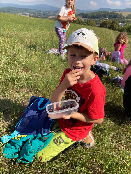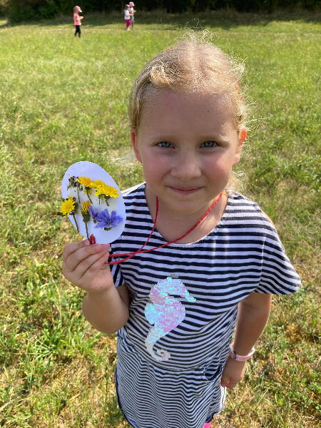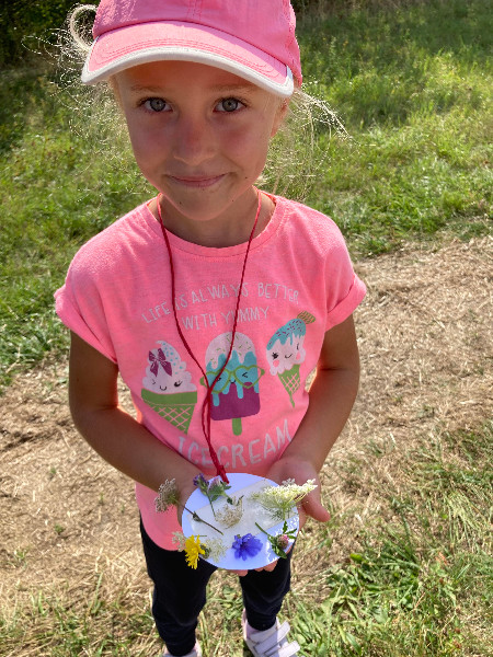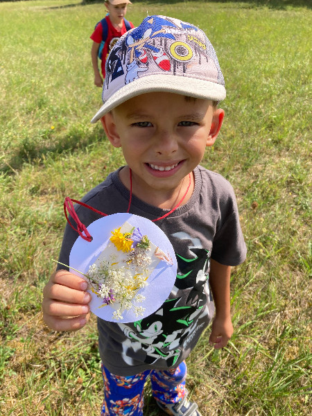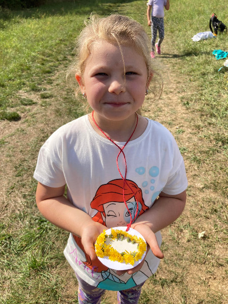 Turistická vychádzka, ktorú naši predškoláci absolvovali bola zameraná na šport, chôdzu, všímanie si a rešpektovanie prírody, spoznávanie a pomenovávanie rastliniek, z ktorých si každý zhotovil medailónik.