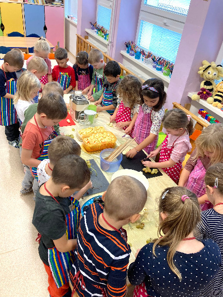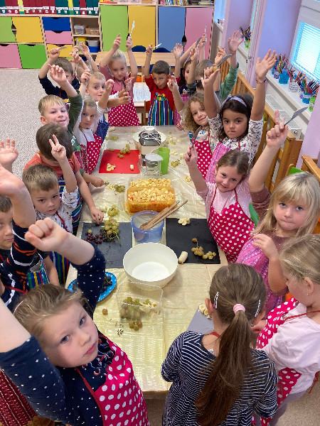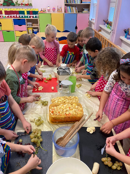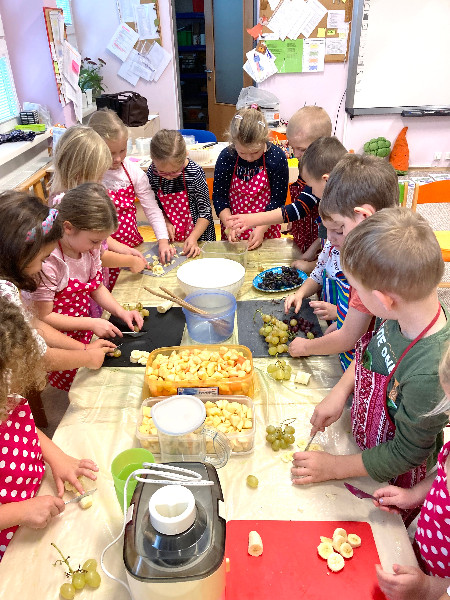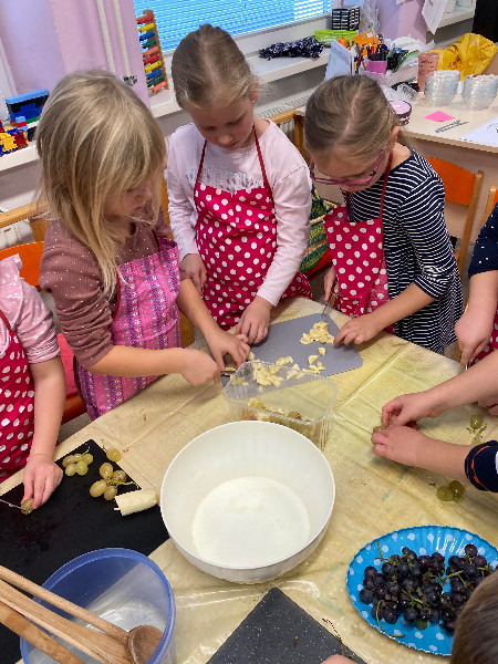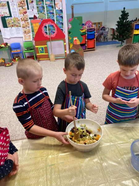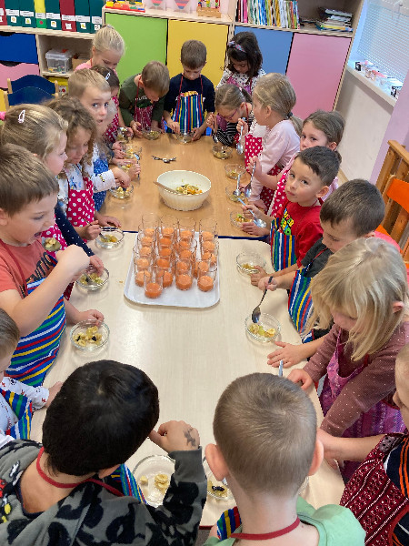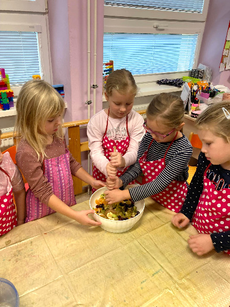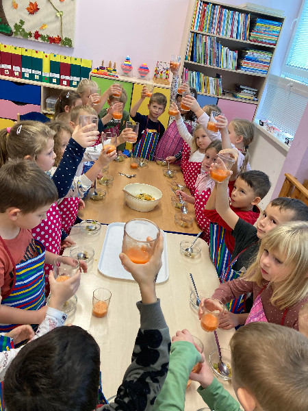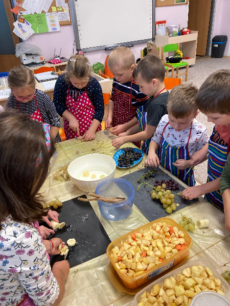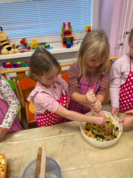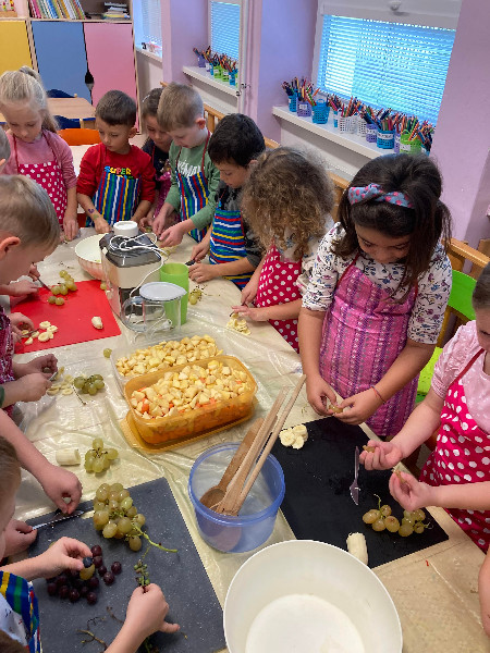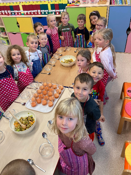 Predškoláci z tr.č.1 MŠ Komenského nelenili, na kuchárov sa zahrali, zeleninku, ovocie ochutnávali a zdravé šťavy so zeleninovými a ovocnými šalátikmi pripravili. V závere si na nich všetci s radosťou pochutili a veľa dobrého pre svoje zdravie urobili.