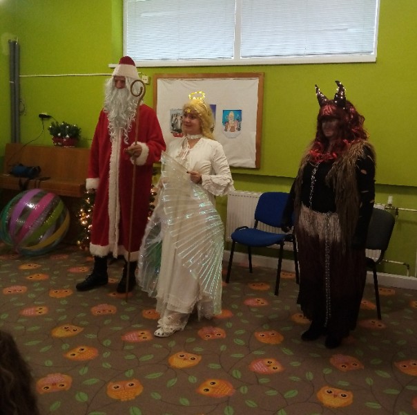 8.12. sme sa aj my dočkali a prišiel k nám do škôlky Mikuláš s anjelom a čerticou Alicou. Spoločne nám ukázali, že hrať sa s loptou je určite lepšie, ako hrať sa na mobile.