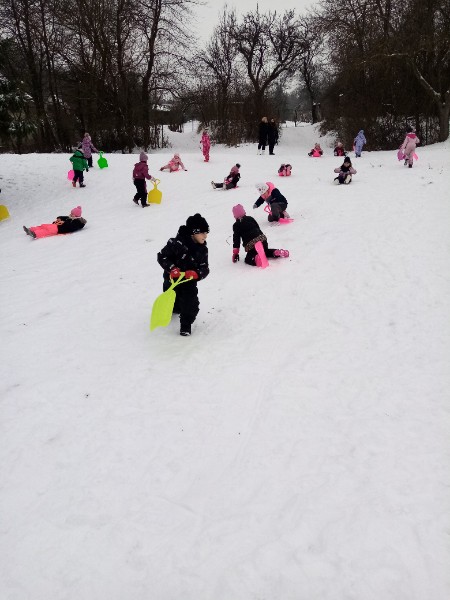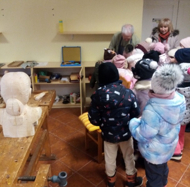 Konečne napadol sneh, tak sme mohli zobrať lopaty a hurááá na kopec. Hoci sme sa kĺzali iba dva dni, bolo nám úžasne. Veríme, že ešte nasneží a my sa budeme môcť vyšantiť. Robili sme i malý pokus zvaný Sopka. Na konci mesiaca sme navštívili výstavu kočíkov, bábik a hier. Stretli sme tam aj ujov rezbárov, ktorí nám ukázali, ako sa tvorí socha z dreva.
