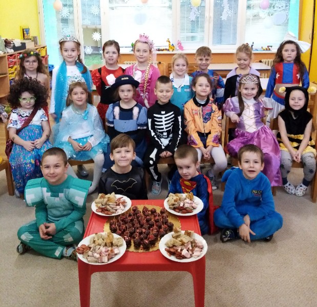Fašiangové veselie sme zavŕšili karnevalom a fašiangovou hostinou.