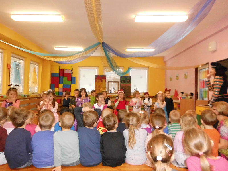 Práve obdobie Fašiangov nám , deťom 4. triedy MŠ pri cukrárni , pripomenuli krásnym programom deti pod vedením pani učiteliek Mlynárovej a Bunovej. Ďakujeme za predvedenie fašiangových tradícií. V materskej škole budeme pokračovať v oslavách Fašiangov karnevalom, 14.2.2017, t.j. utorok. Už sa všetci veľmi tešíme.