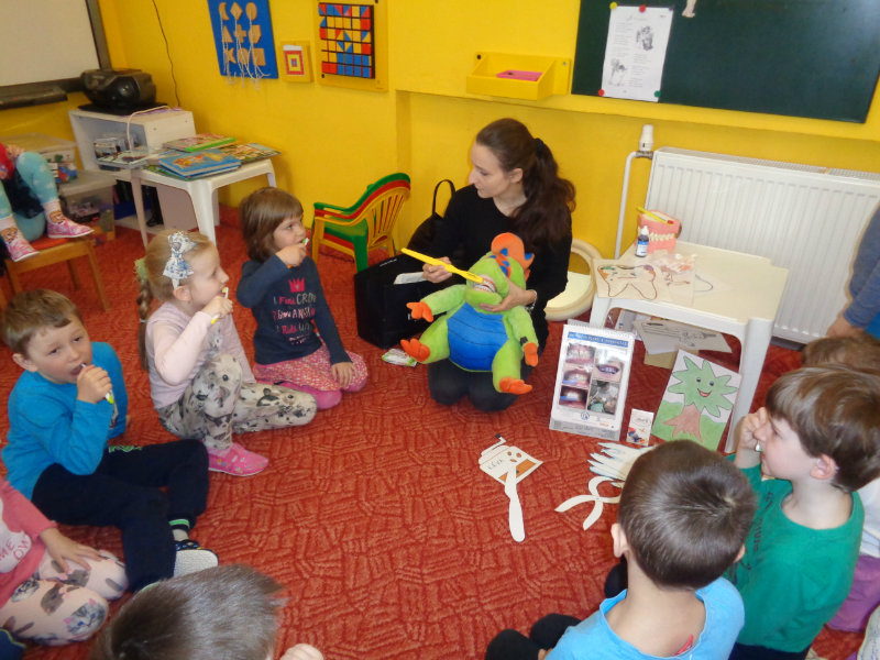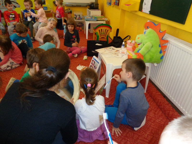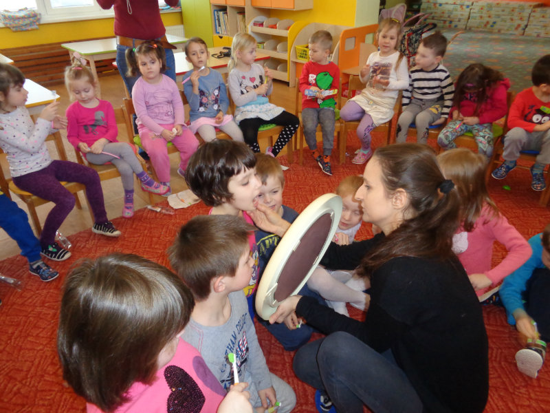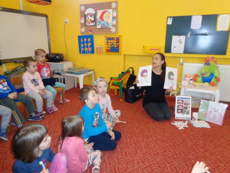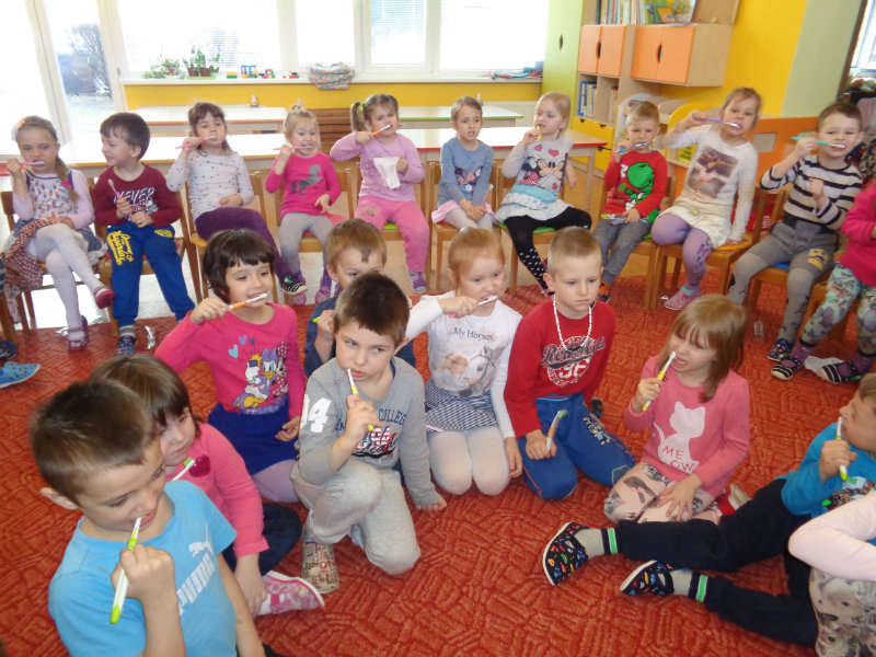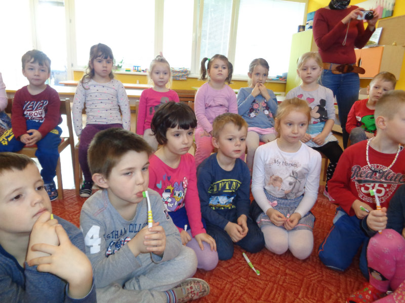 Poučným rozprávaním i praktickými ukážkami a činnosťami sme sa dozvedeli veľa nového o starostlivosti o zúbky.