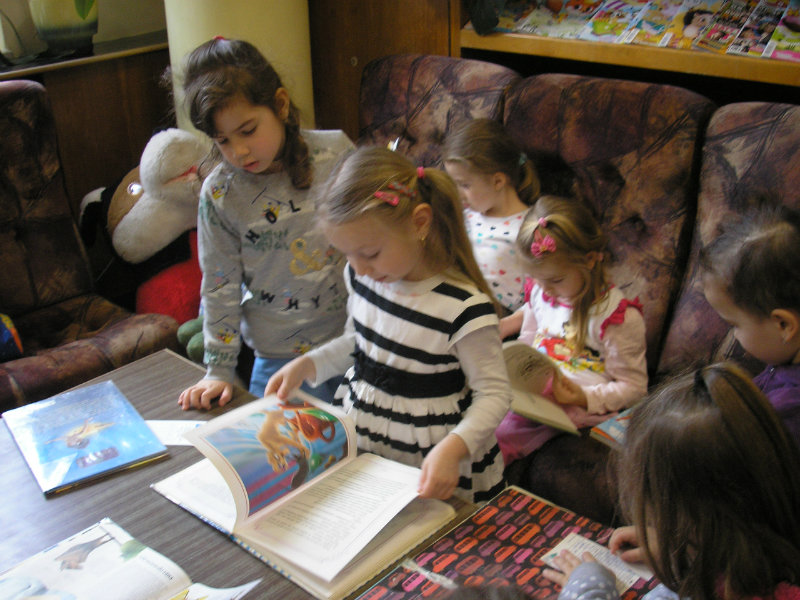 Dňa 14. marca 2017 sme sa s deťmi z 3. triedy MŠ na Hurbanovej ulici 142 vybrali na návštevu do knižnice. Deti mali možnosť reálne zistiť, že bohato ilustrované, zaujímavé a poučné knihy a encyklopédie si môžu kedykoľvek požičať priamo v knižnici v našom meste. Pracovníčky knižnice deťom poukazovali jednotlivé oddelenia a vysvetlili, čo je potrebné k tomu, aby sa mohli stať čitateľom knižnice s preukazom. Nakoniec si deti v detskom oddelení vybrali knižku podľa vlastného výberu, so záujmom v nej listovali a prezerali si krásne ilustrácie. Tiež obdivovali množstvo kníh poukladaných a zoradených na poličkách. Nakoniec deti predniesli tetám z knižnice báseň "O knižnici", ktorá sa im veľmi páčila.