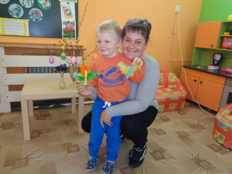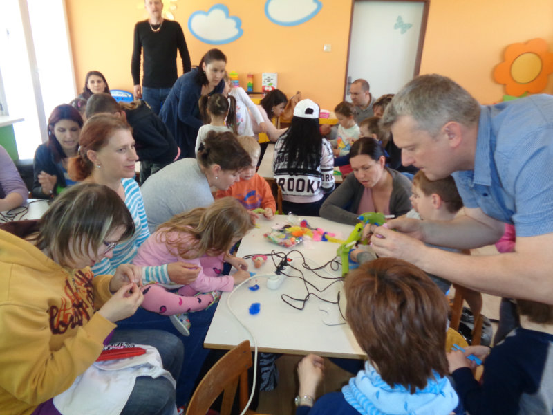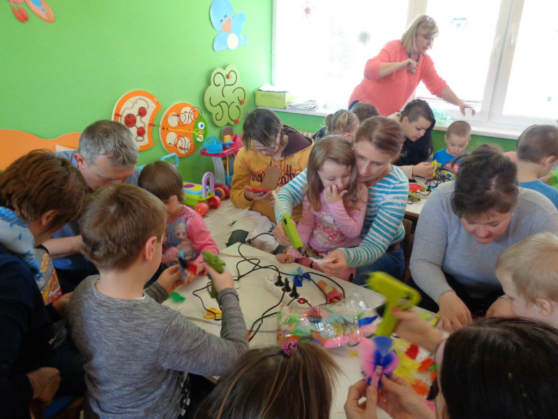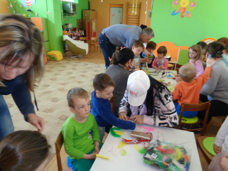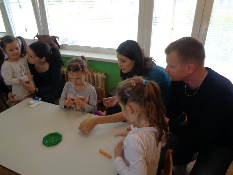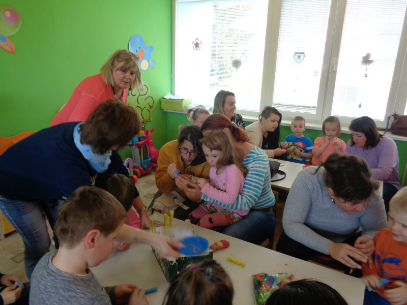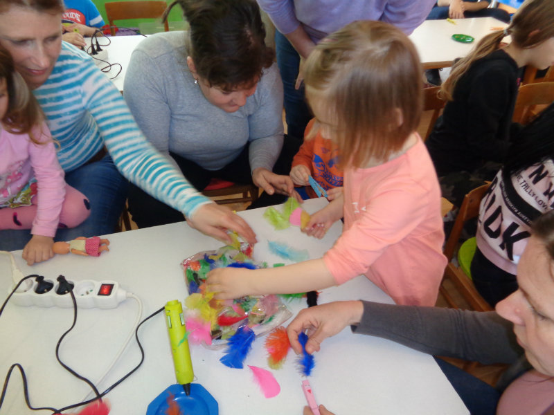 Deti si po kultúrnom programe vyhrnuli rukáviky a s mamami a oteckami vyrábali pestrofarebných vtáčikov. Práca sa im vydarila.