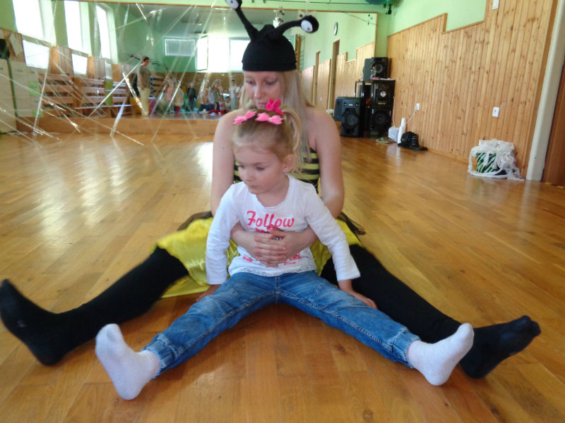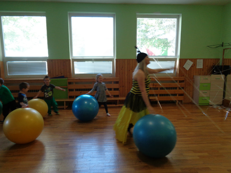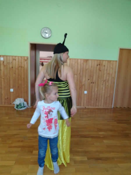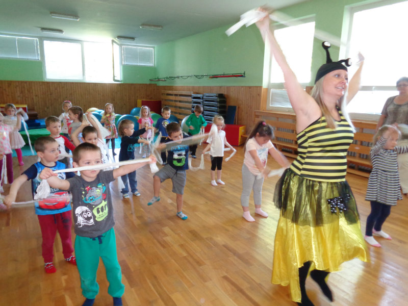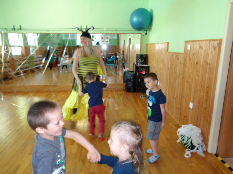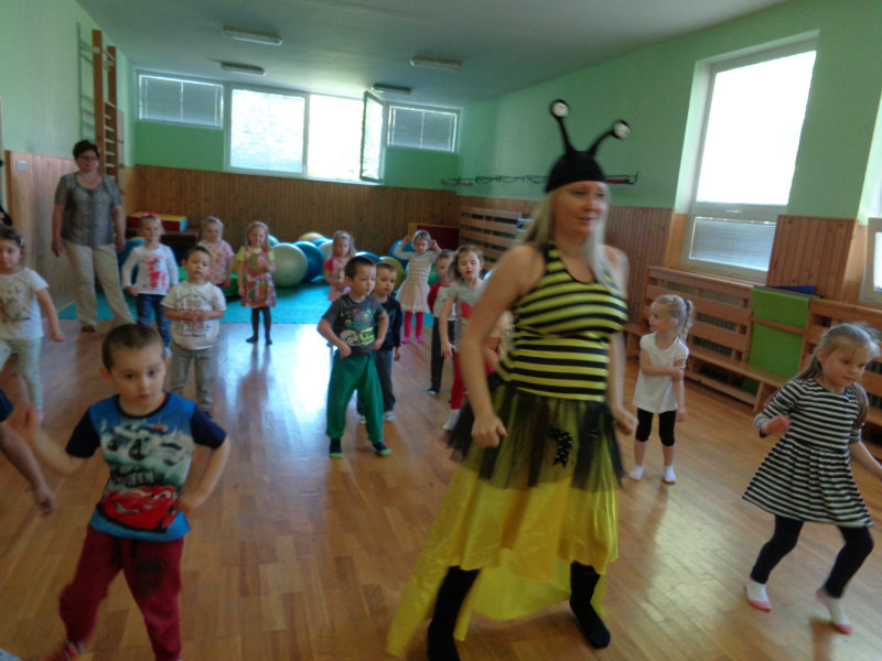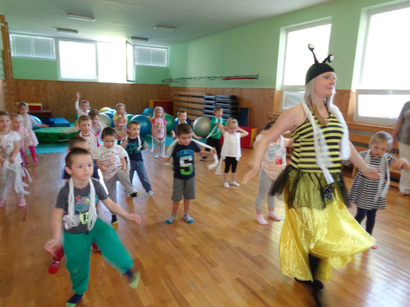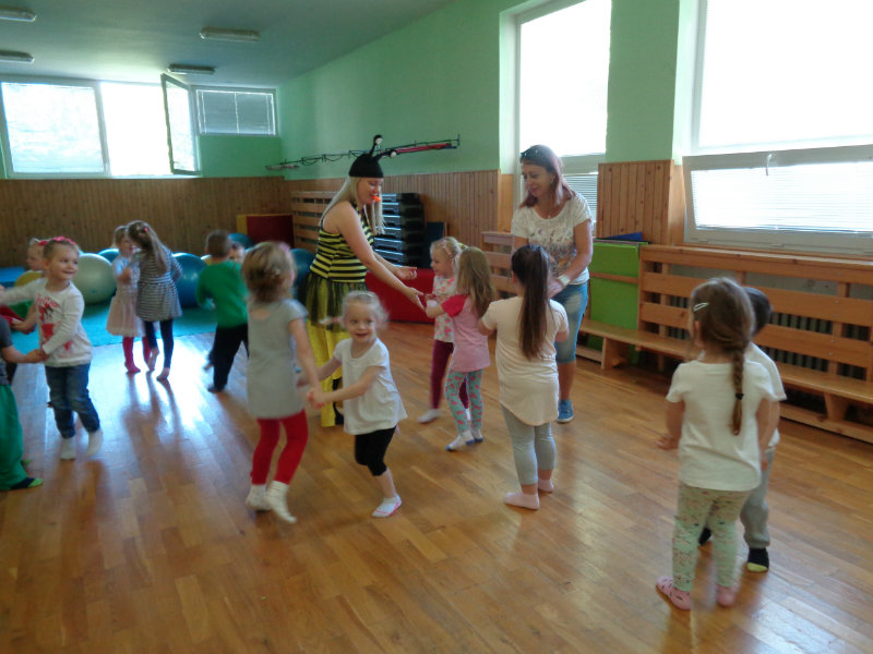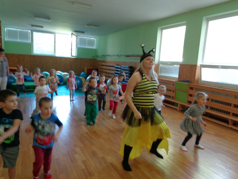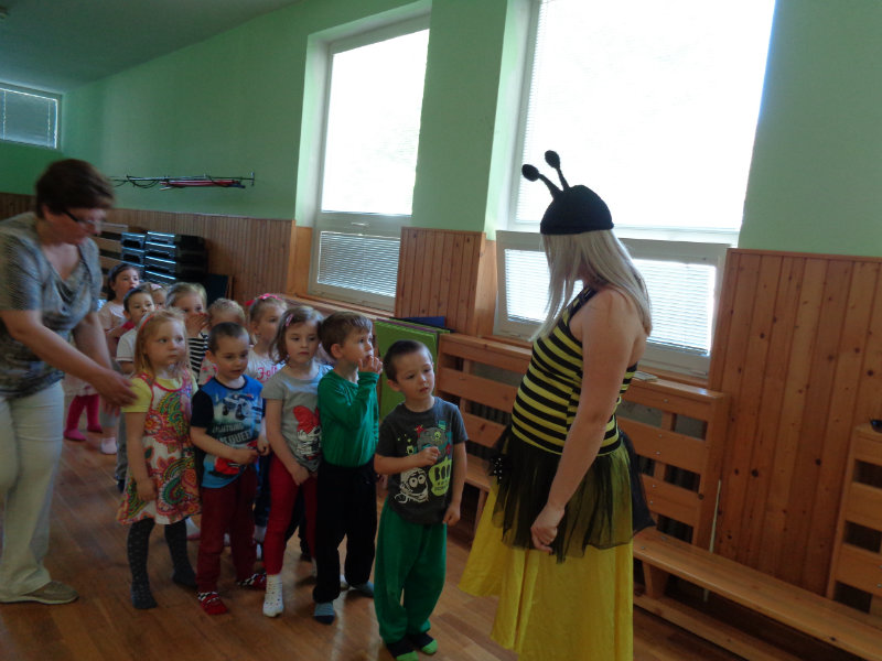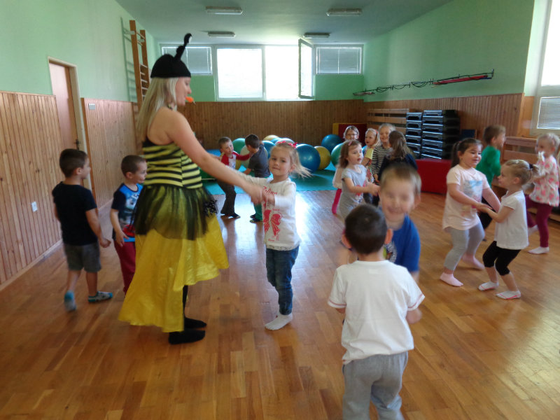 Dňa 19.5. 2017 nás pozvala pani učiteľka Kristínka Kotrasová na návštevu do CVČ. Pripravila si pre deti bohatý a zaujímavý program so športovým i poznávacím zameraním. Deti cvičili s fit-loptami, so stuhami, súťažili, hrali sa píšťalkový tanec. Privítala nás krásna včielka a nakoľko sme sa učili o hmyze, všetky aktivity boli zamerané na danú tému. Deti robili slimáka, stonožku, vyťahovali z pripravenej pavučiny obrázky, lovili hmyz a pritom hádali hádanky. Ochutnávali so zaviazanými očami pripravené maškrty - ovocie a piškóty s medom od včielky. Pani učiteľka si pripravila pre deti na záver krásny darček - vrecúško v tvare včielky, na ktoré deti navliekali korálky. Za odmenu im pani učiteľka Kristínka prilepila na ruku tetovačku v tvare srdiečka.Deťom sa aktivity i darčeky veľmi páčili, odchádzali plní dojmov a zážitkov. Veľmi pekne ďakujeme pani učiteľke Kotrasovej z Centra voľného času za podnetný program a darčeky.