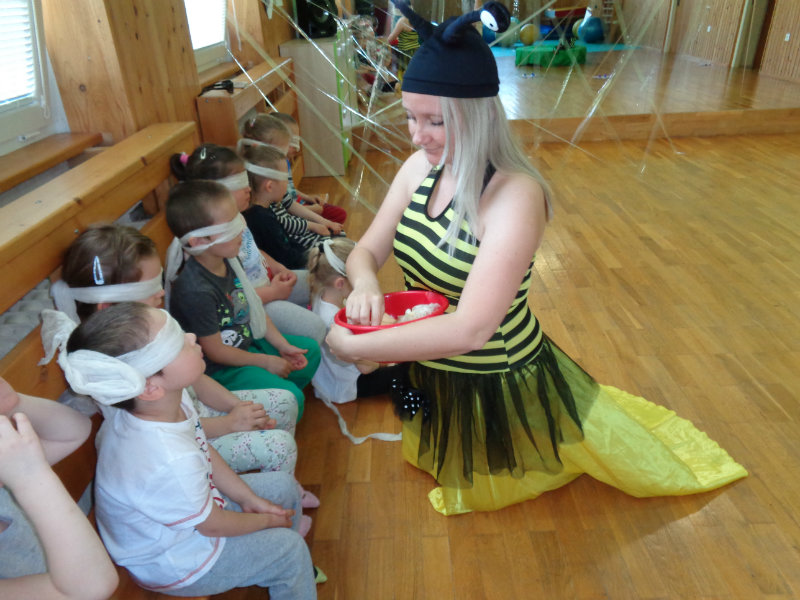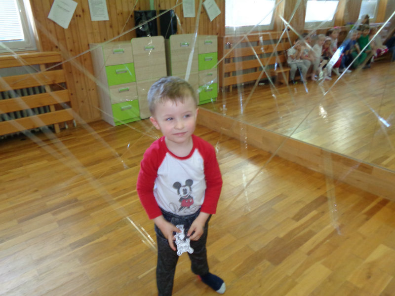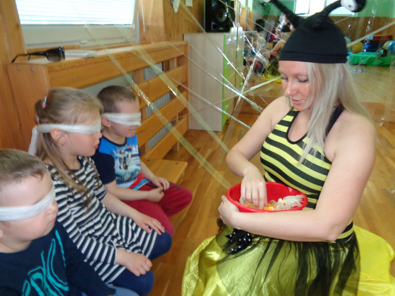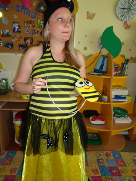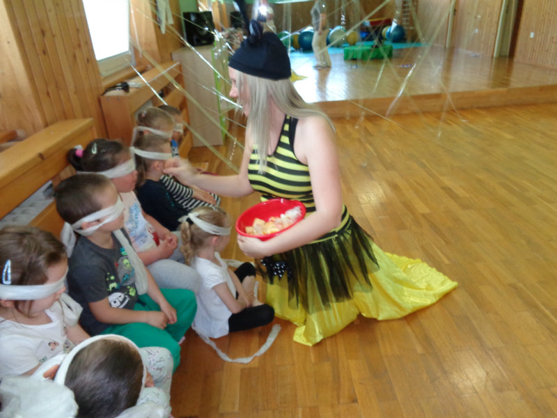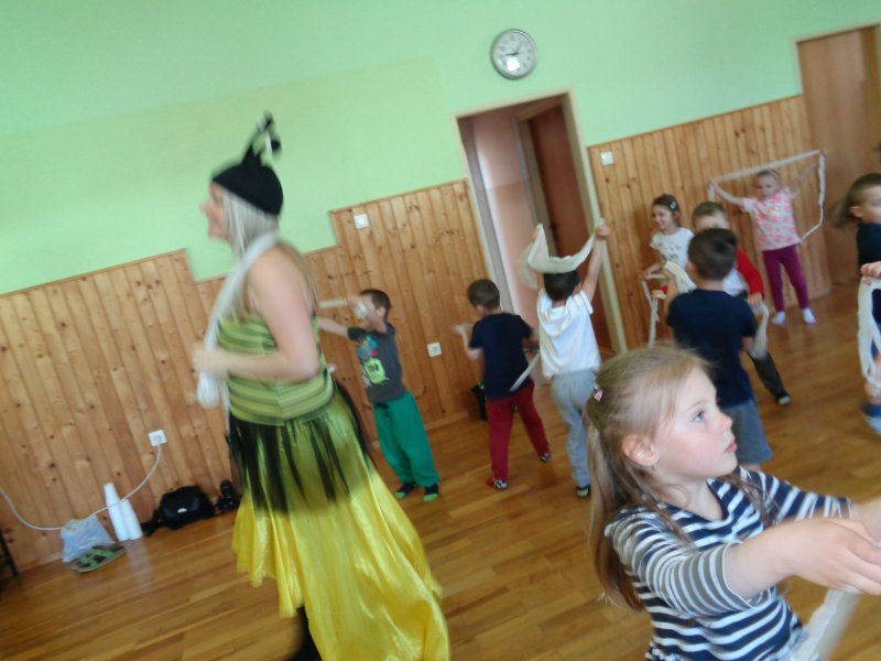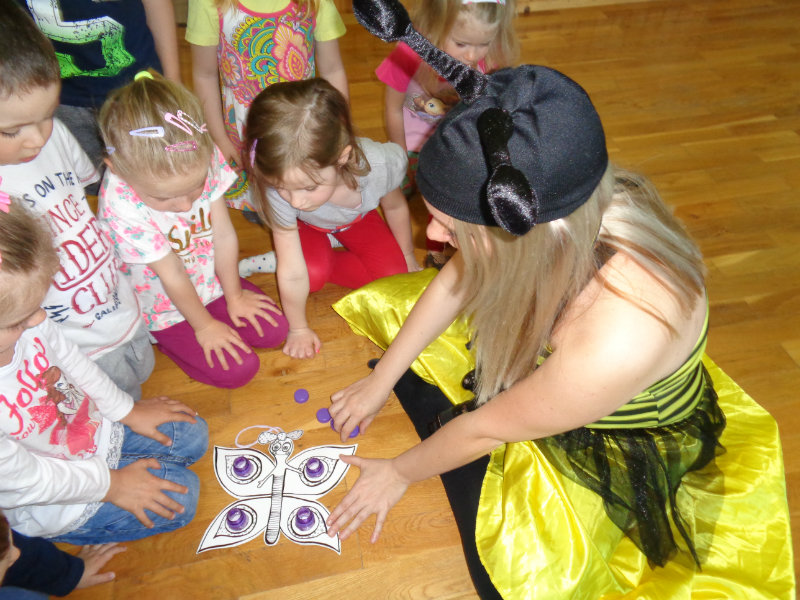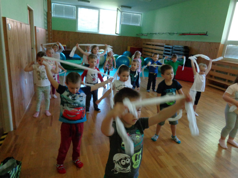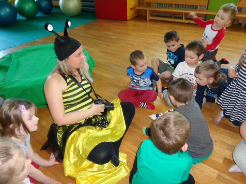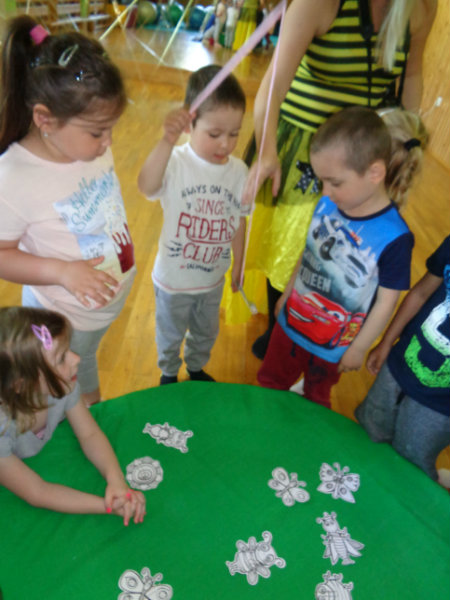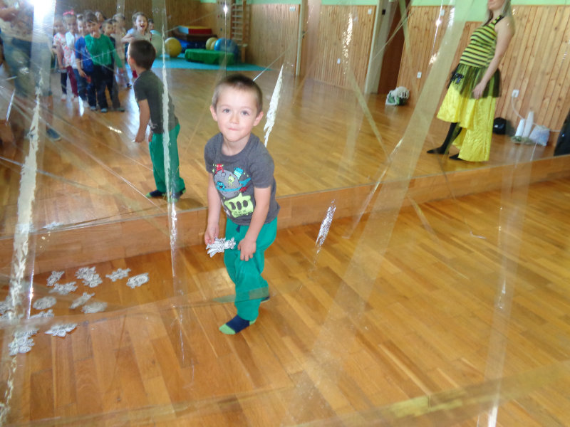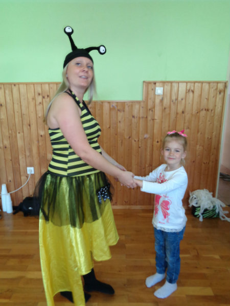 Dňa 19.5. 2017 nás pozvala pani učiteľka Kristínka Kotrasová na návštevu do CVČ. Pripravila si pre deti bohatý a zaujímavý program so športovým i poznávacím zameraním. Deti cvičili s fit-loptami, so stuhami, súťažili, hrali sa píšťalkový tanec. Privítala nás krásna včielka a nakoľko sme sa učili o hmyze, všetky aktivity boli zamerané na danú tému. Deti robili slimáka, stonožku, vyťahovali z pripravenej pavučiny obrázky, lovili hmyz a pritom hádali hádanky. Ochutnávali so zaviazanými očami pripravené maškrty - ovocie a piškóty s medom od včielky. Pani učiteľka si pripravila pre deti na záver krásny darček - vrecúško v tvare včielky, na ktoré deti navliekali korálky. Za odmenu im pani učiteľka Kristínka prilepila na ruku tetovačku v tvare srdiečka.Deťom sa aktivity i darčeky veľmi páčili, odchádzali plní dojmov a zážitkov. Veľmi pekne ďakujeme pani učiteľke Kotrasovej z Centra voľného času za podnetný program a darčeky.