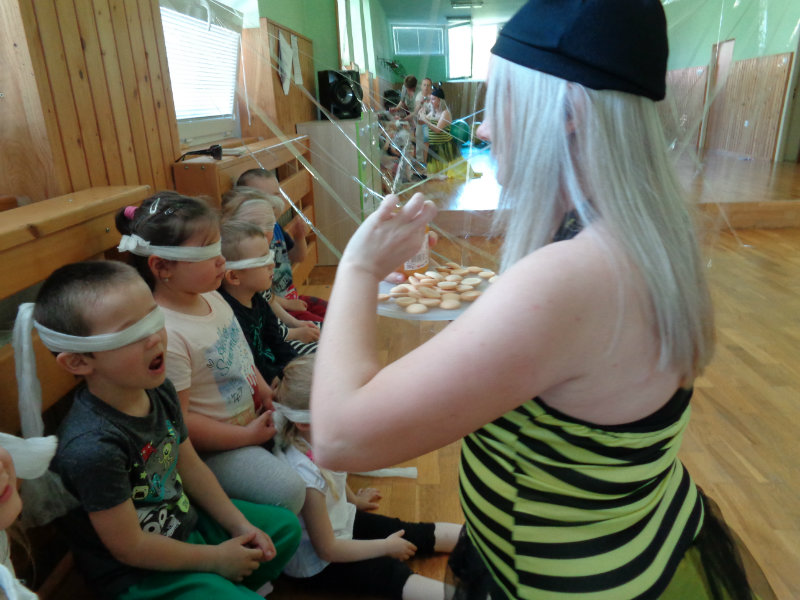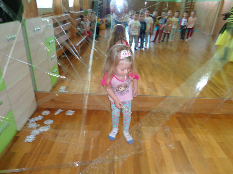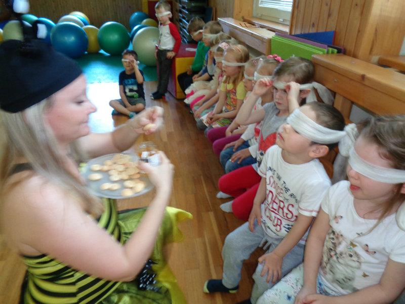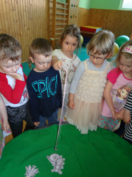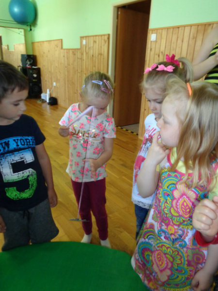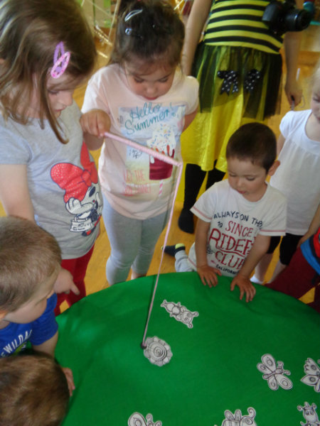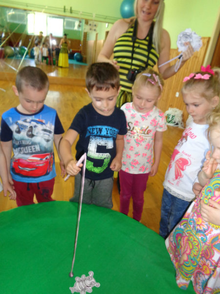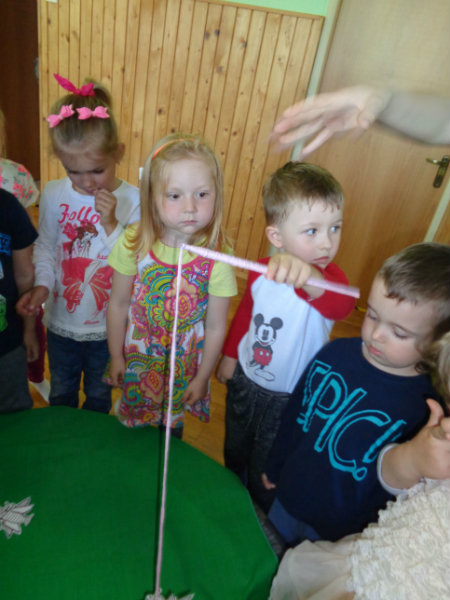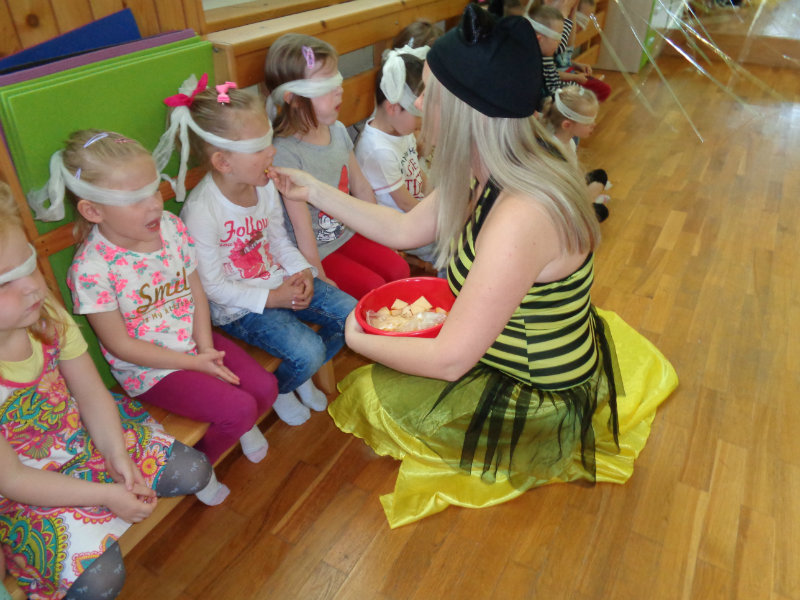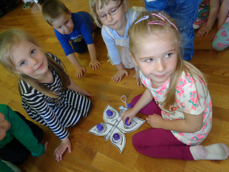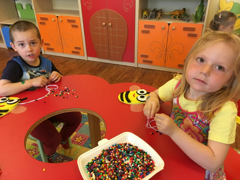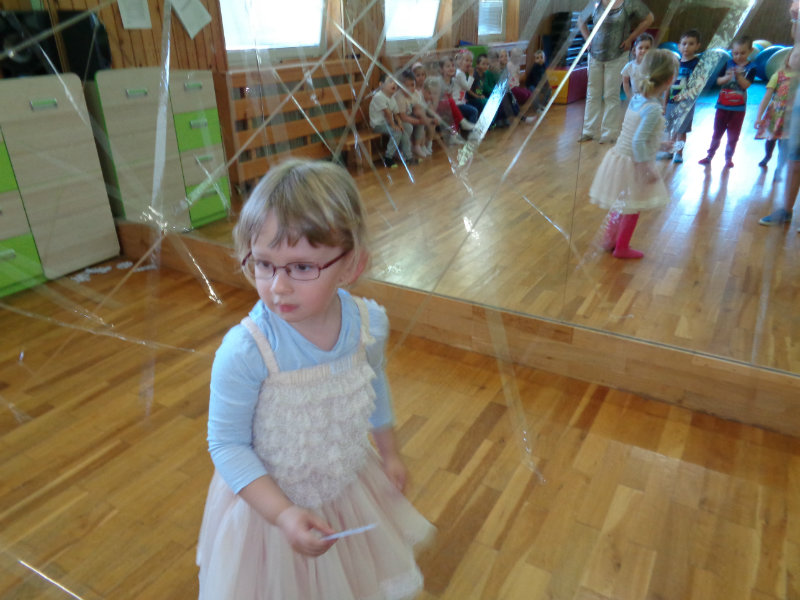 Dňa 19.5. 2017 nás pozvala pani učiteľka Kristínka Kotrasová na návštevu do CVČ. Pripravila si pre deti bohatý a zaujímavý program so športovým i poznávacím zameraním. Deti cvičili s fit-loptami, so stuhami, súťažili, hrali sa píšťalkový tanec. Privítala nás krásna včielka a nakoľko sme sa učili o hmyze, všetky aktivity boli zamerané na danú tému. Deti robili slimáka, stonožku, vyťahovali z pripravenej pavučiny obrázky, lovili hmyz a pritom hádali hádanky. Ochutnávali so zaviazanými očami pripravené maškrty - ovocie a piškóty s medom od včielky. Pani učiteľka si pripravila pre deti na záver krásny darček - vrecúško v tvare včielky, na ktoré deti navliekali korálky. Za odmenu im pani učiteľka Kristínka prilepila na ruku tetovačku v tvare srdiečka.Deťom sa aktivity i darčeky veľmi páčili, odchádzali plní dojmov a zážitkov. Veľmi pekne ďakujeme pani učiteľke Kotrasovej z Centra voľného času za podnetný program a darčeky.