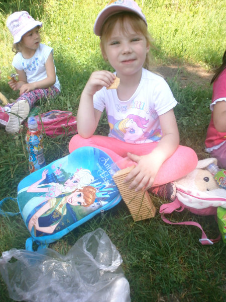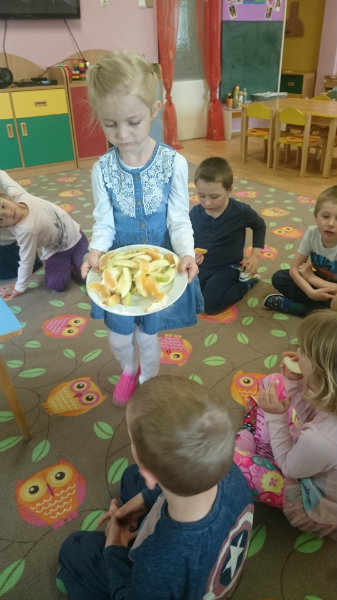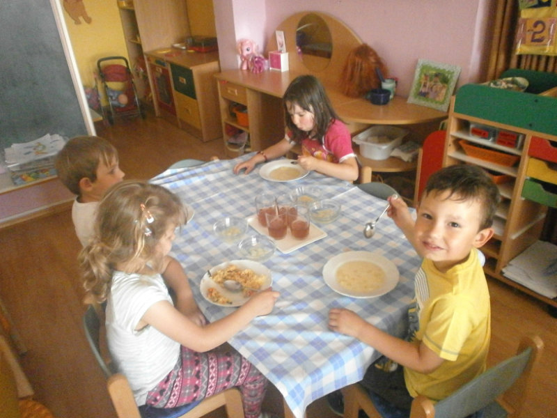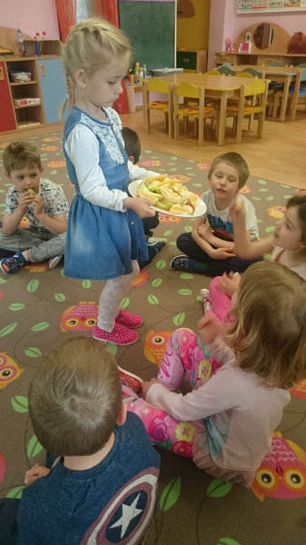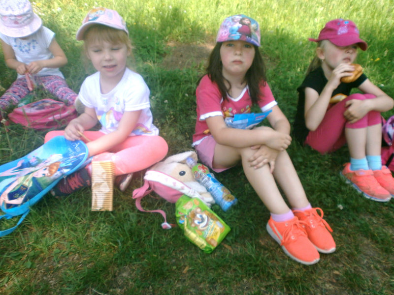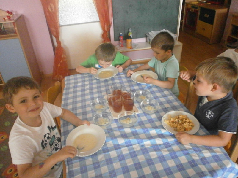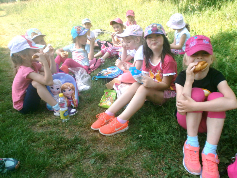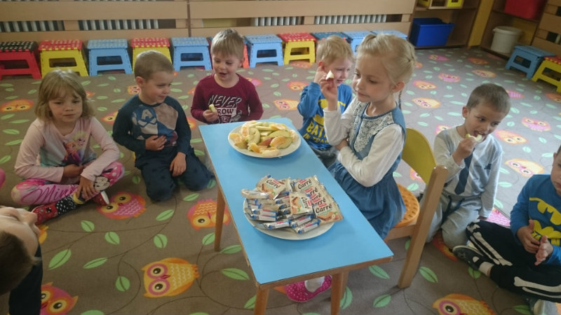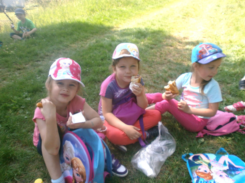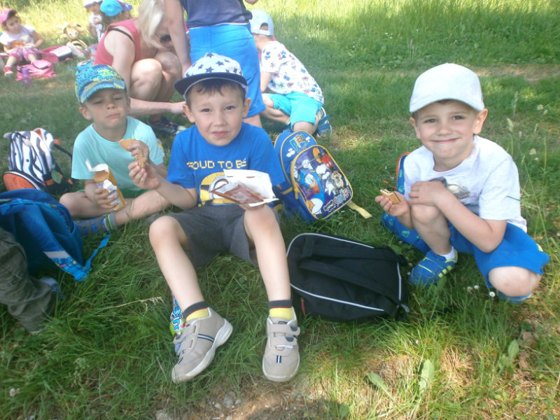 Nezabudli sme sa ani posilniť keksíkmi, ovocím a vodičkou, aby sme zvládli cestu späť do MŠ, kde nás už čakal chutný obed.