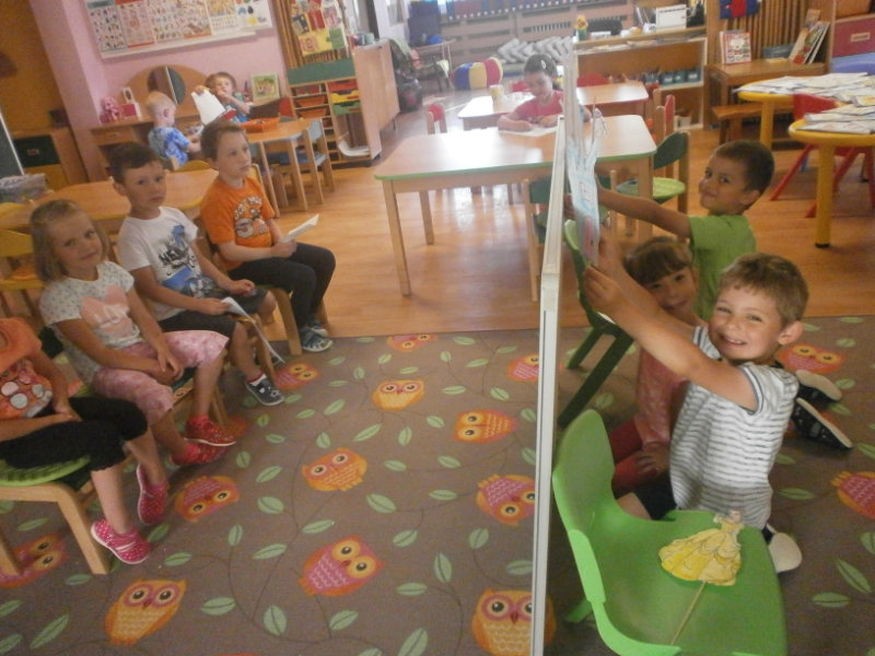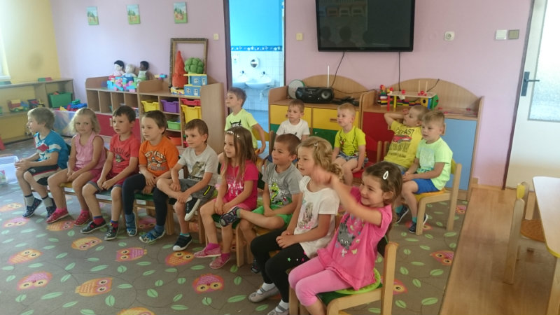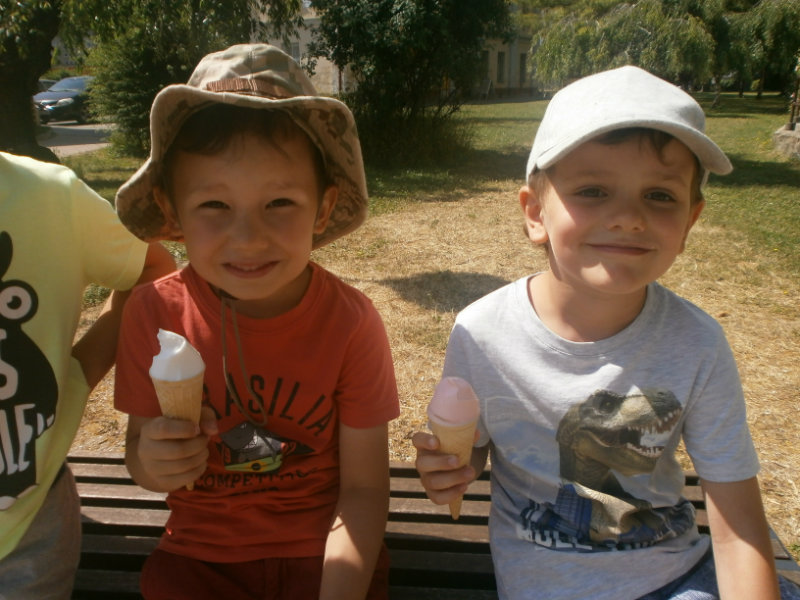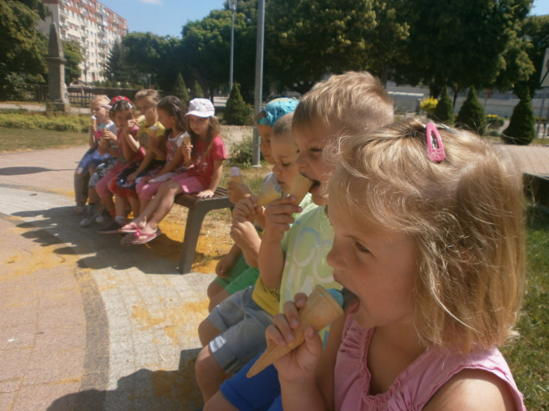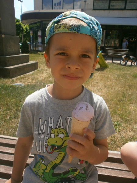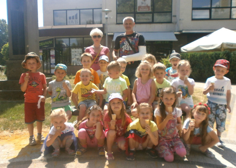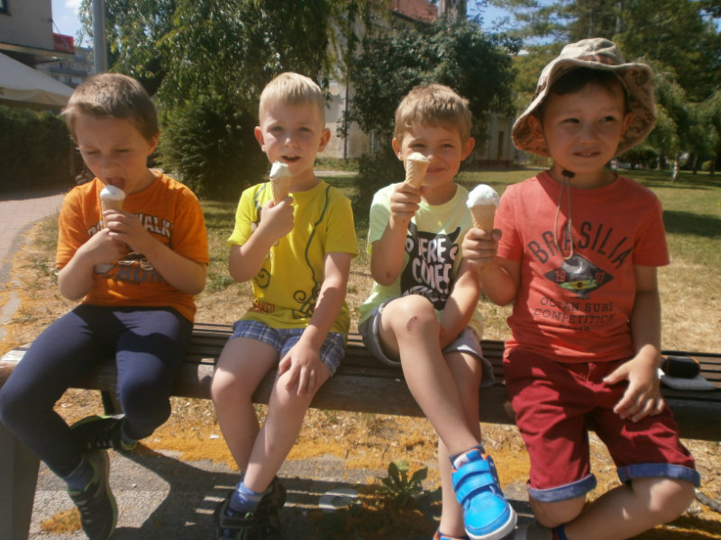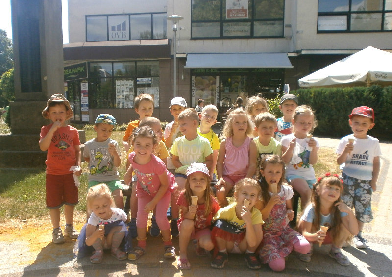 Jedným z našich zážitkových dní bol v našej triede 15. júl 2017. Deti si rozvíjali sebaobslužné činnosti pri obsluhovaní sa s jedlom. Technicky si precvičili skladanie a ukladanie oblečenia s dodržiavaním presnosti, orientáciu v skrinke vo vlastných veciach. Zahrali si divadielko O Šípovej Ruženke a Kráske a zvierati, na ktoré si vlastnoručne vytvorili papierové bábky. Za odmenu sme navštívili cukráreň Ritmo , kde si deti pochutnali na výbornej zmrzline, na ktorú nám sponzorsky prispel p. A. Straka, za čo mu srdečne ďakujeme. Podporili sme u detí sociálne kontakty, schopnosti spoločenského správania sa v meste, komunikáciu, precvičenie si zdvorilostných fráz Dve čarovné slovká viem, pri sebe ich nosím, to prvé je ďakujem a to druhé prosím.