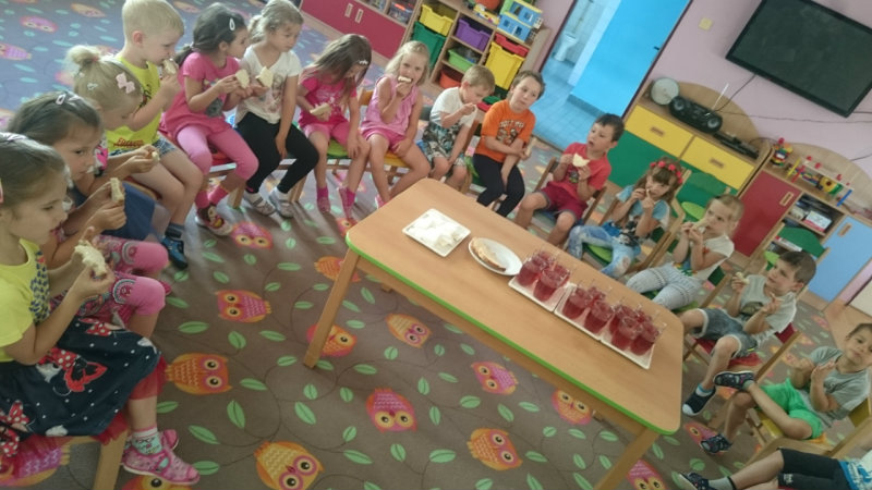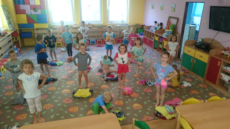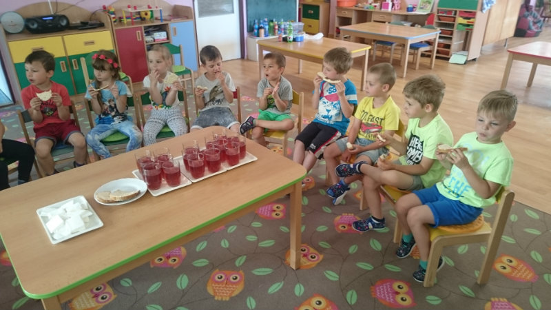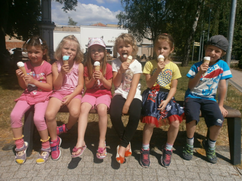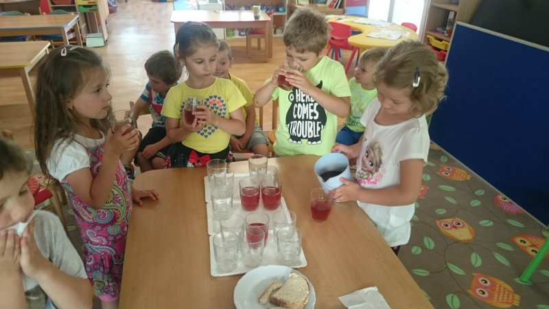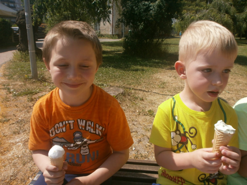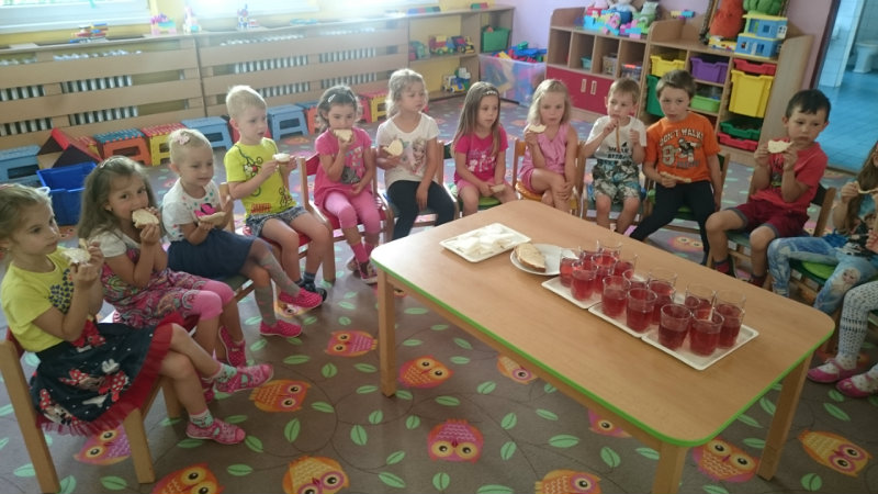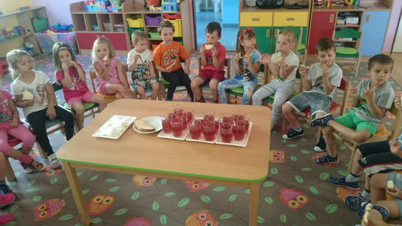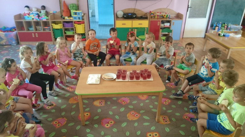 Jedným z našich zážitkových dní bol v našej triede 15. júl 2017. Deti si rozvíjali sebaobslužné činnosti pri obsluhovaní sa s jedlom. Technicky si precvičili skladanie a ukladanie oblečenia s dodržiavaním presnosti, orientáciu v skrinke vo vlastných veciach. Zahrali si divadielko O Šípovej Ruženke a Kráske a zvierati, na ktoré si vlastnoručne vytvorili papierové bábky. Za odmenu sme navštívili cukráreň Ritmo , kde si deti pochutnali na výbornej zmrzline, na ktorú nám sponzorsky prispel p. A. Straka, za čo mu srdečne ďakujeme. Podporili sme u detí sociálne kontakty, schopnosti spoločenského správania sa v meste, komunikáciu, precvičenie si zdvorilostných fráz Dve čarovné slovká viem, pri sebe ich nosím, to prvé je ďakujem a to druhé prosím.