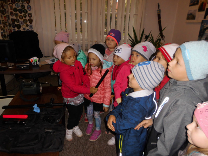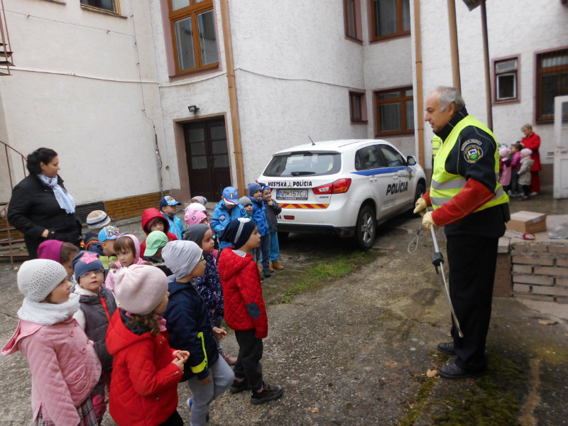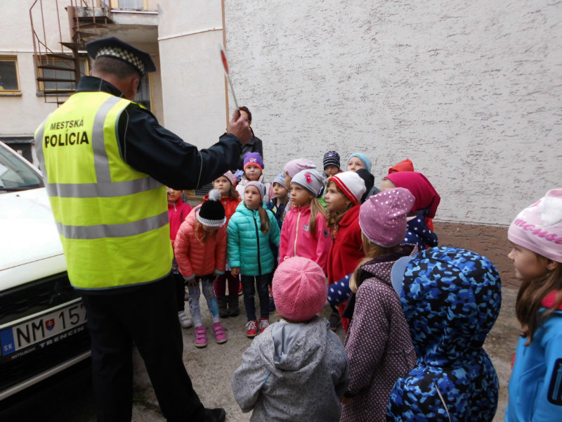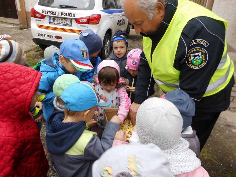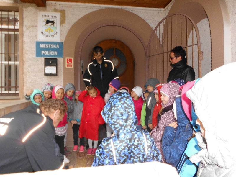Dňa 5.10.2017 trieda zvedavých sovičiek prijali pozvanie od mestských policajtov v Starej Turej za účelom ochrany pred nebezpečnými nástrahami, dodržiavania pravidiel cestnej premávky a ochrany zdravia pred úrazmi, či už ako chodec, alebo cyklista. Poniektorí vchádzali k budove s rešpektom a úctou, iné boli zvedavé na príbehy o práci polície a policajný výstroj. Deti odchádzali zo stretnutia s nadšením, pretože mali možnosť vyskúšať si niektoré predmety, ktoré policajti pri svojej práci používajú.