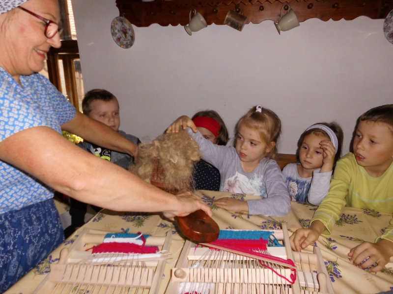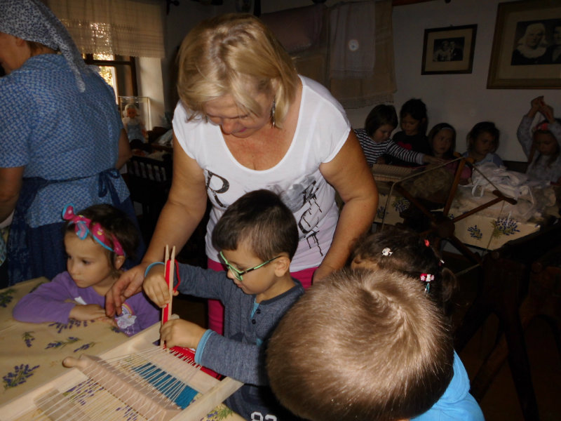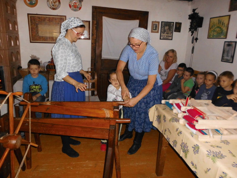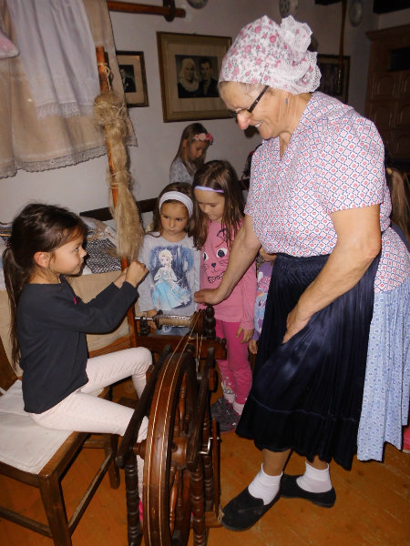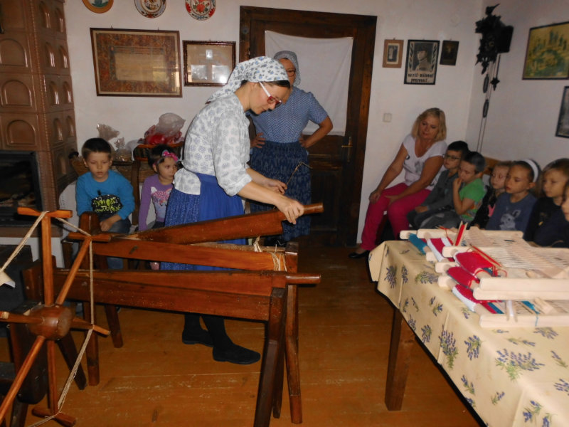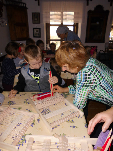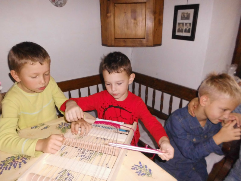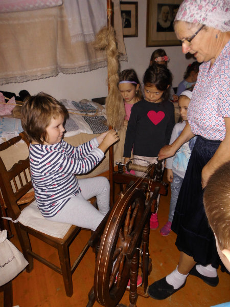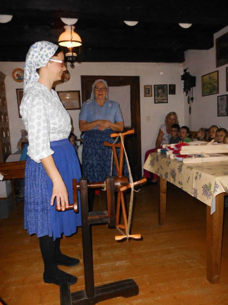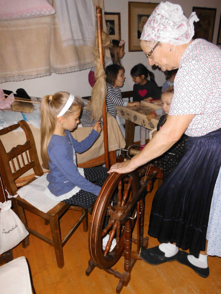 Mnohé deti využili možnosť vyskúšať si ako sa pracuje na trepačke, s motovidlom, na kolovrátku, na hachle, ale aj na miniatúrnych krosnách.
