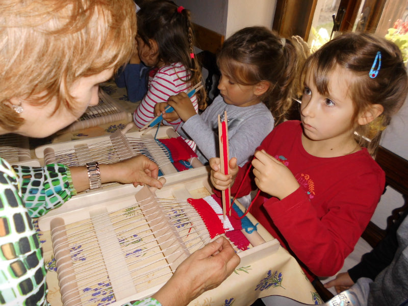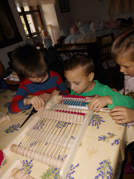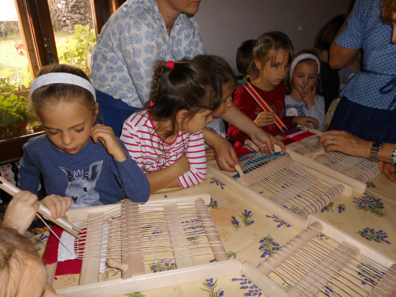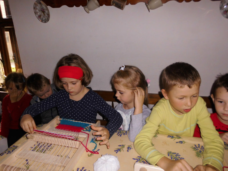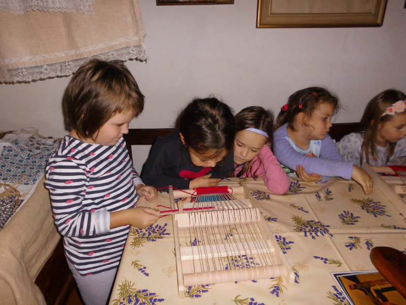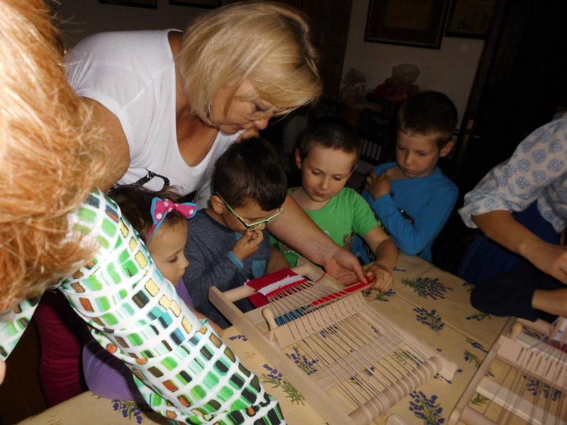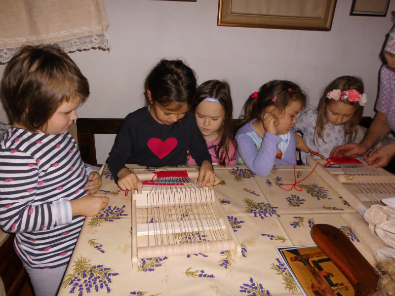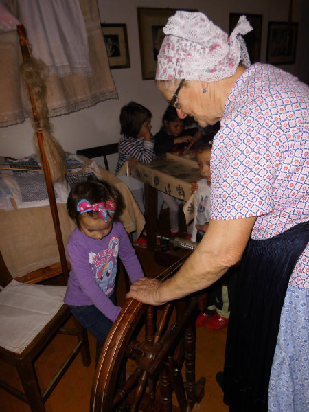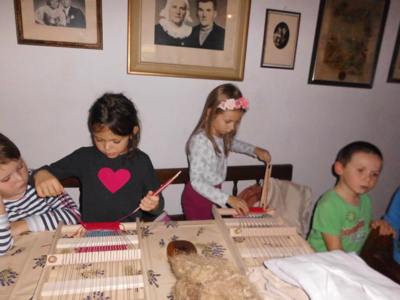 Mnohé deti využili možnosť vyskúšať si ako sa pracuje na trepačke, s motovidlom, na kolovrátku, na hachle, ale aj na miniatúrnych krosnách.