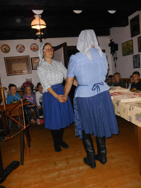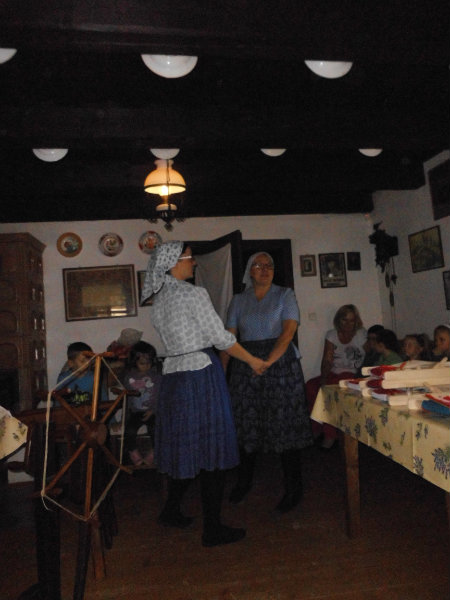 Priadky boli tiež spoločenskou udalosťou, kedy sa spievalo, tancovalo a rozprávali sa rôzne príbehy. Jeden, trošku strašidelný si vypočuli i naše deti. Naučili sa však i pesničky "Močela konope, močela" a "Slúžela sem u Kadleca" a tanček.