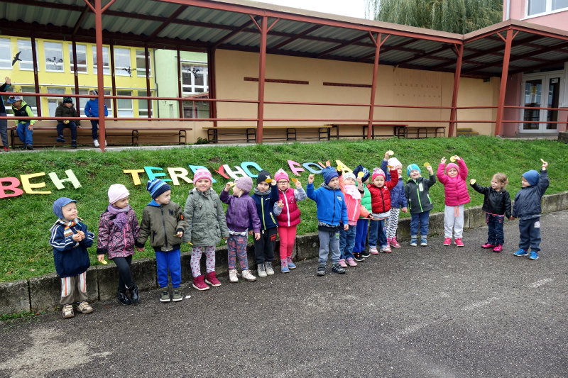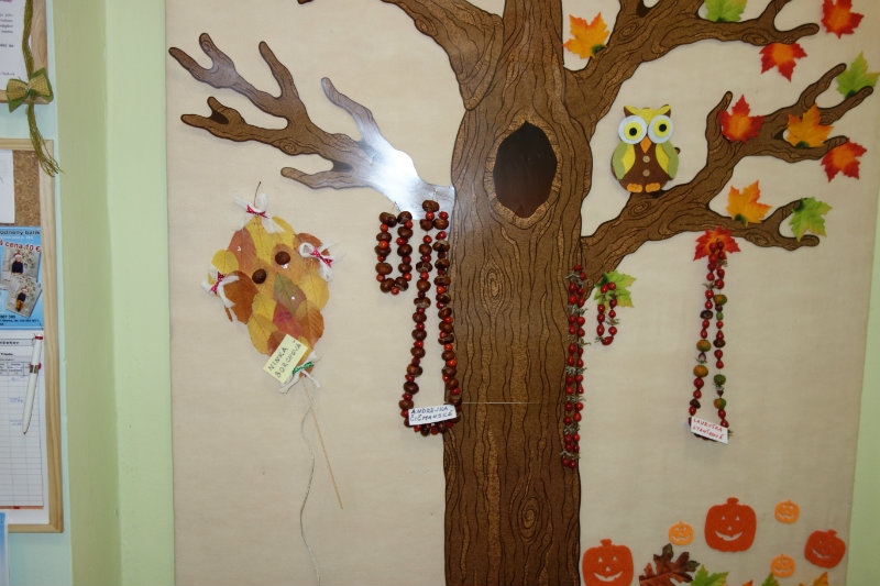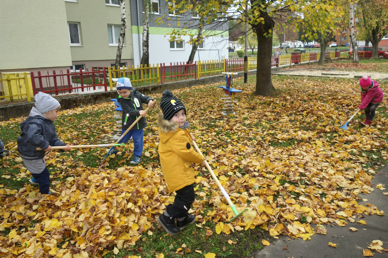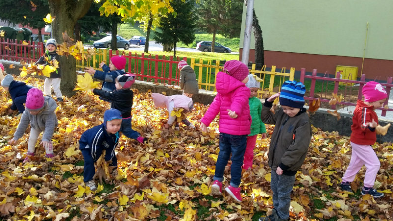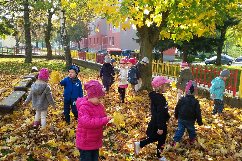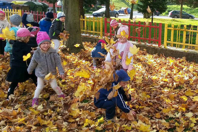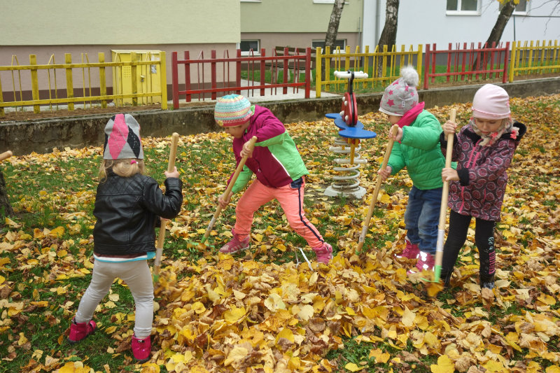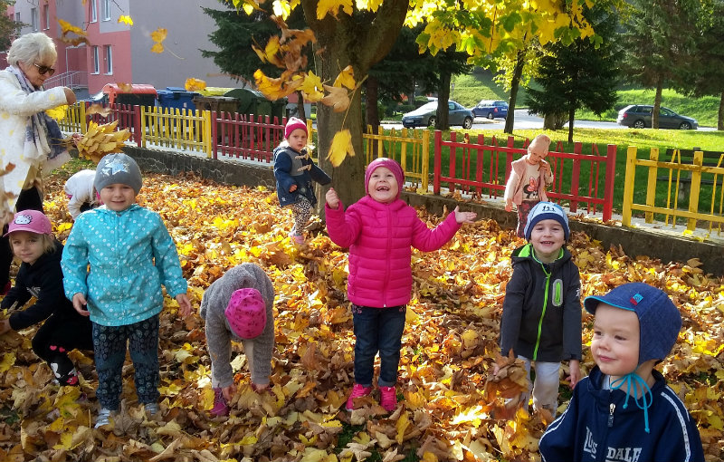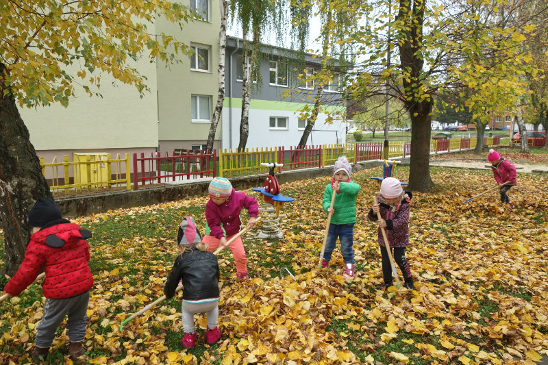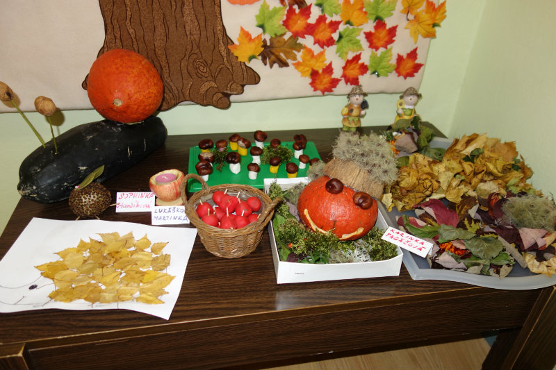 Prebieha každoročne vo všetkých triedach našej MŠ. Navštívila aj triedu malých Lienok. Deti sa oboznamovali s darmi, ktoré ponúka záhrada, les, pole. Sledovali sme zmeny v prírode, farby, ktorými jeseň premaľovala svet okolo nás. Nazberané lístie sme využili pri výtvarnej a pracovnej činnosti. V MŠ na Komenského ulici sa uskutočnil Beh Terryho Foxa, ktorého sme sa s radosťou zúčastnili a získali medaile. Na celoškolskej šarkaniáde sme dokázali vystúpať na kopec - Drahy, kde sme spolu s rodičmi pozorovali účinky vetra pri lietaní šarkana. Pri tvorbe gaštankov, ovocníčkov, strašidiel z tekvíc, ... nám tiež pomohli rodičia, za čo im ďakujeme. Deti sa počas prvých týždňov nového školského roka naučili veľa nových hier, básničiek a pesničiek a zoznámili sa s novými kamarátmi.