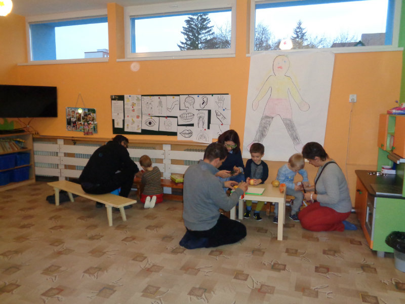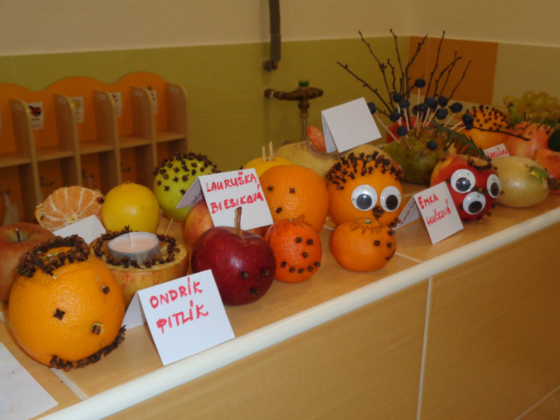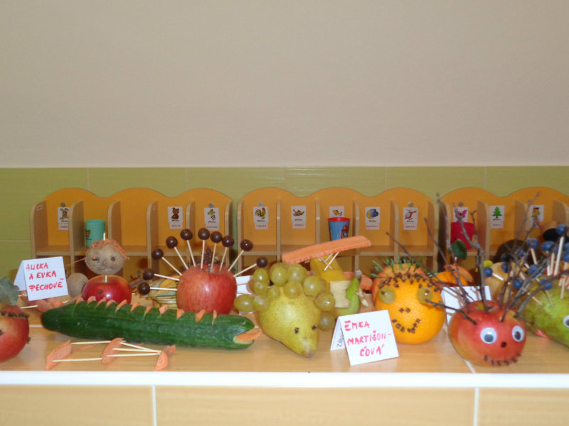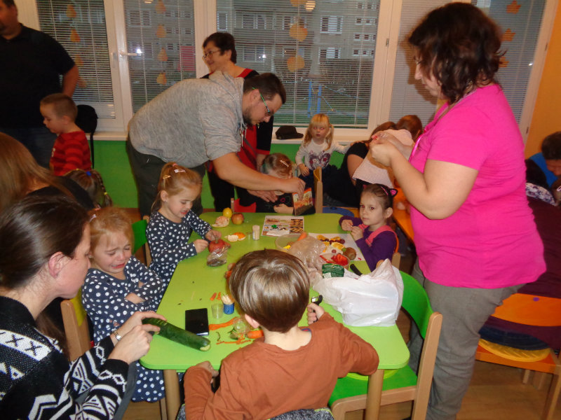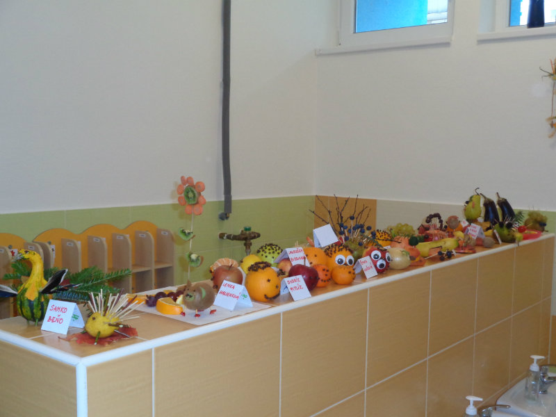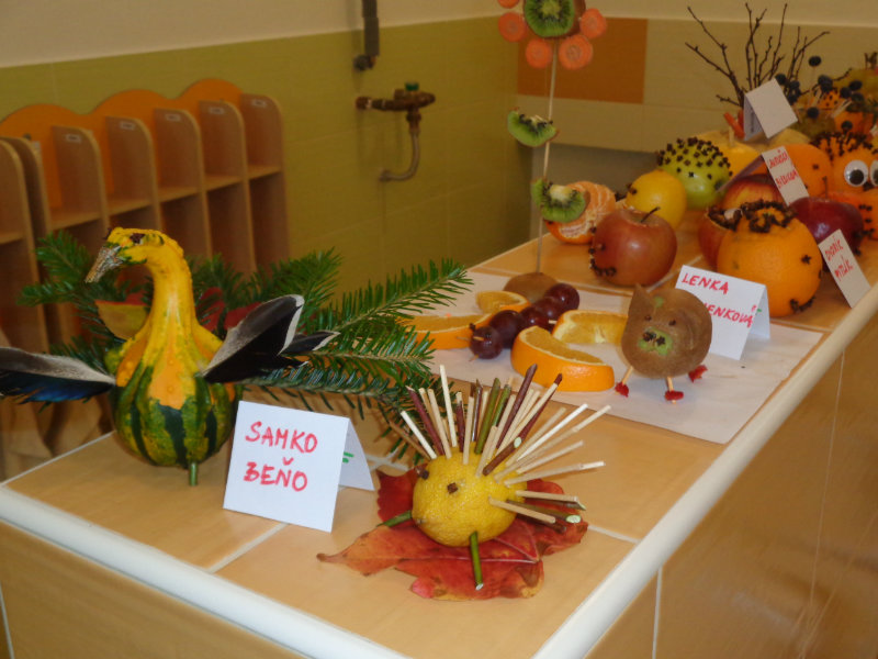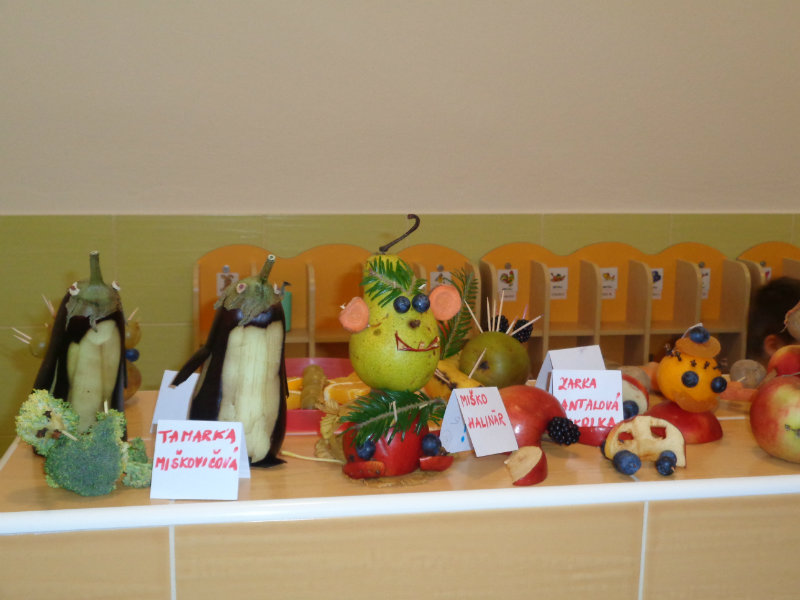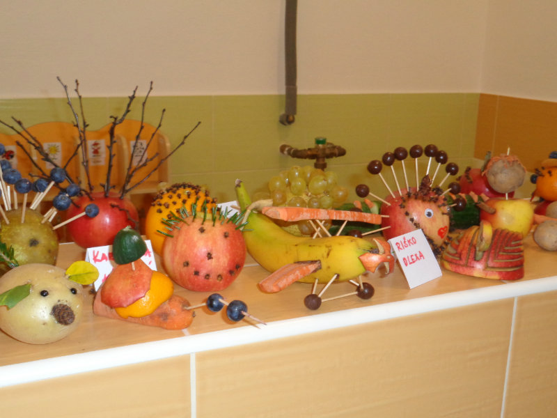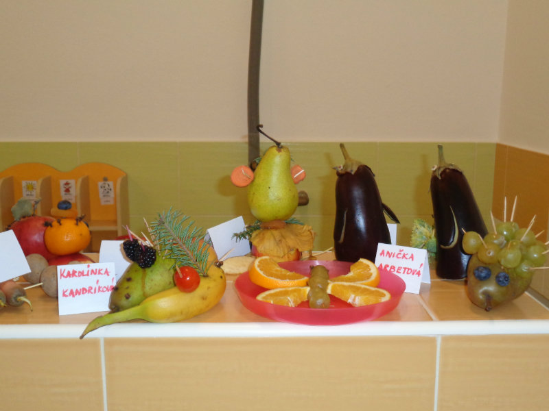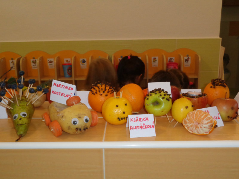 Vo štvrtok 9.11.2017 sme v našej triede privítali mamičky, ockov a babičky, aby sme spoločne vyrobili zaujímavé postavičky a predmety z ovocia a zo zeleniny.