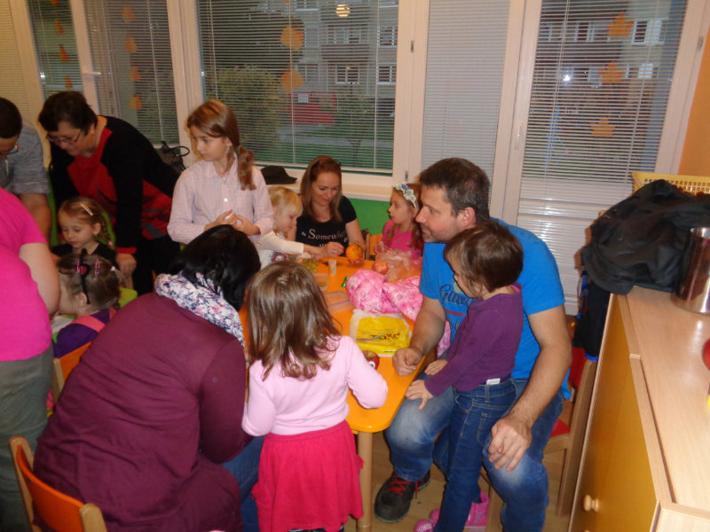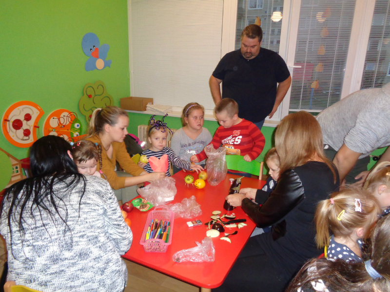 Básničky, pesničky a hry s jesennou tematikou navodili tú správnu atmosféru. Po skončení programu mamičky a ockovia vybrali prinesené suroviny a začala sa výroba rôznych predmetov.