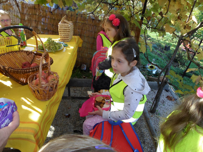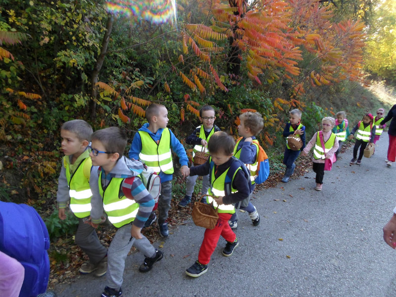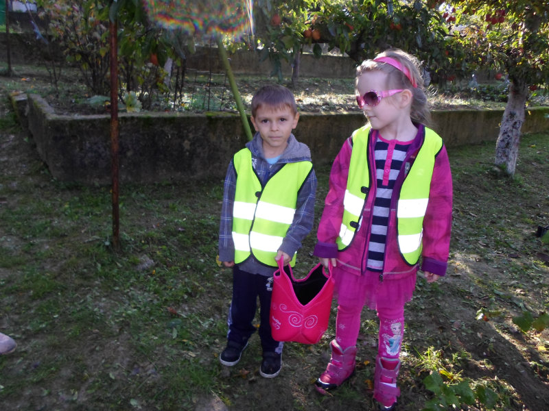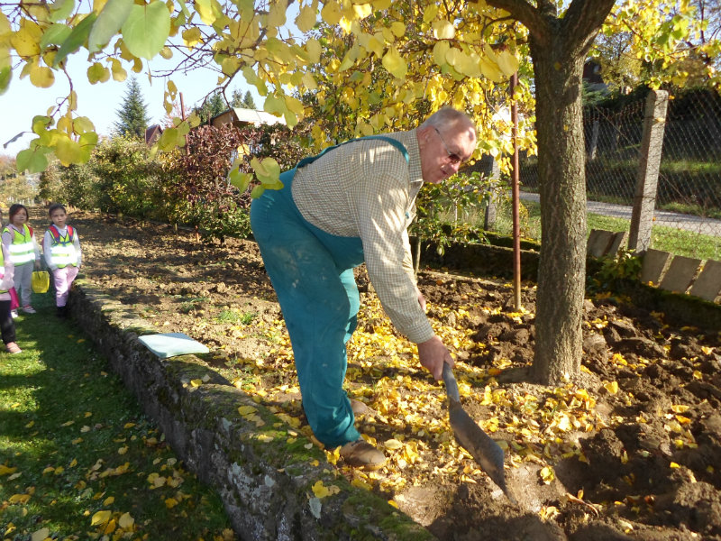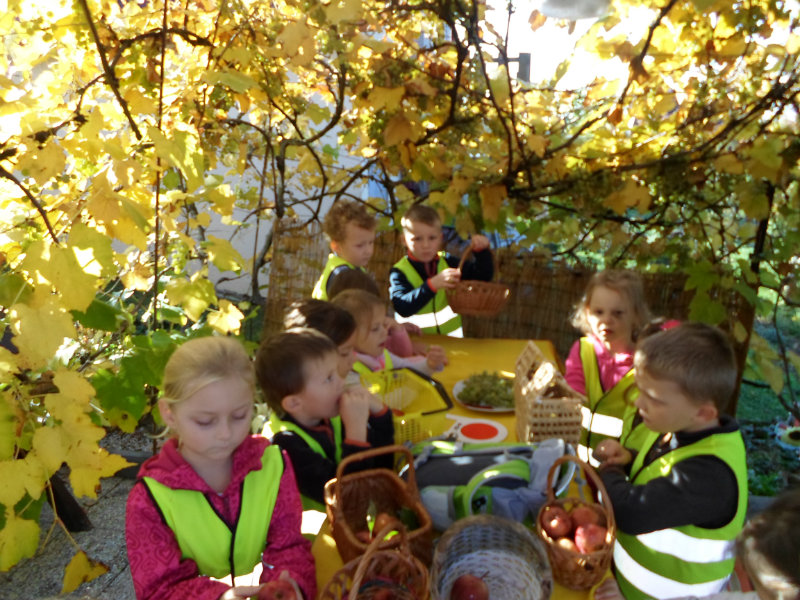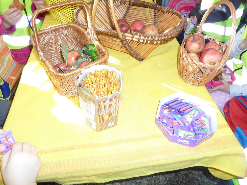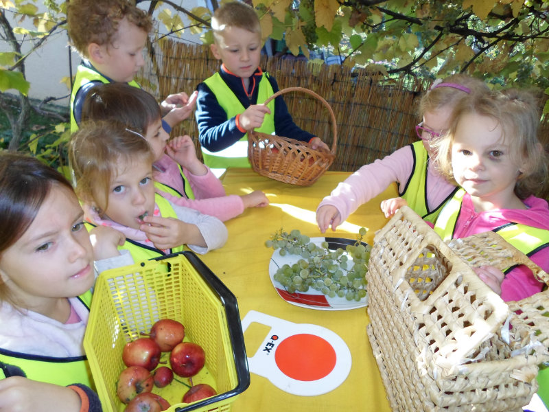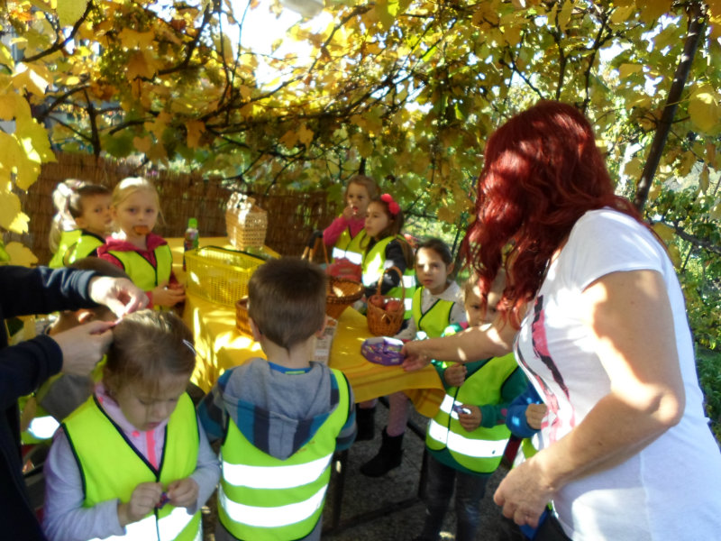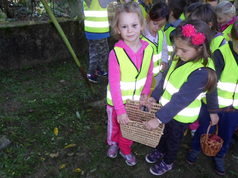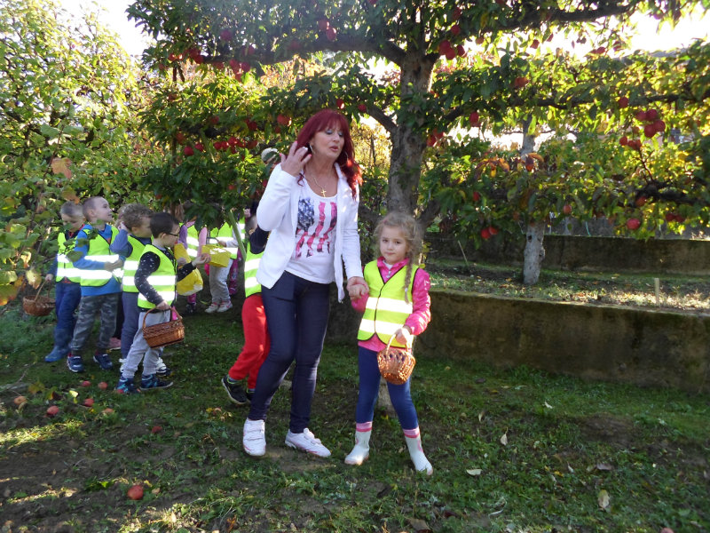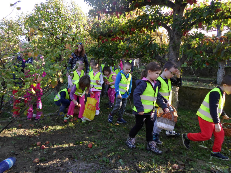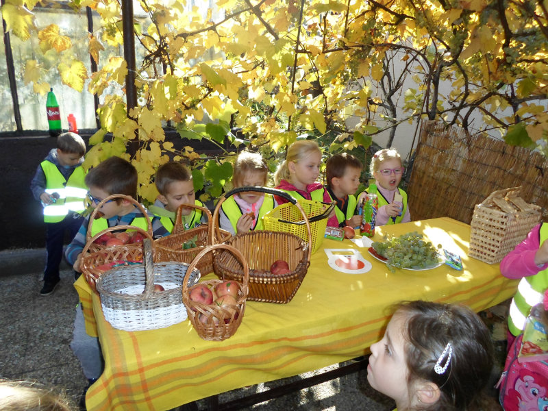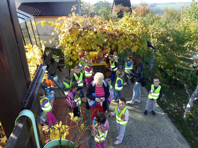 Oberačka jabĺk v sade u babičky. Deti sa zoznámili s jesennými prácami, zberom úrody a jej uskladnením. S košíkmi rukách sme sa vybrali do záhradkárskej oblasti nad Starou Turou, k babičke našej Sari Nor, k pani Vičíkovej. Pozvala nás, aby sme jej pomohli obrať v sade jabĺčka. Po príchode sme sa pustili do práce. Po dvojiciach sme zbierali úrodu a opatrne sypali jabĺčka do pripravenej debničky. Keď sme boli s prácou hotoví, pozvali nás domáci ku stolu na ,,oldomáš". Pohostili nás nakrájanými jabĺčkami, hroznom, čokoládkami. Po občerstvení, sme si spravili veselicu, na ktorej sme si zaspievali známe piesne: Bolo raz jabĺčko krásne, Červené jabĺčko vo vrecku mám, Jeseň pani bohatá, Jeseň už prilieta po chotári, zarecitovali básne Spadla hruška zelená, Ja som slivka slivôčka...Zo susednej záhrady nás pán záhradkár pozval na výstavu kaktusov. Obdivovali sme rôzne tvary, veľkosti, pichliače, kvety. V ďalšej záhrade nám ujo ukázal, ako sa rýľuje, a pripravuje pôda na zimu. Rozlúčili sme sa, poďakovali a s príjemnými zážitkami sme sa vrátili do MŠ.