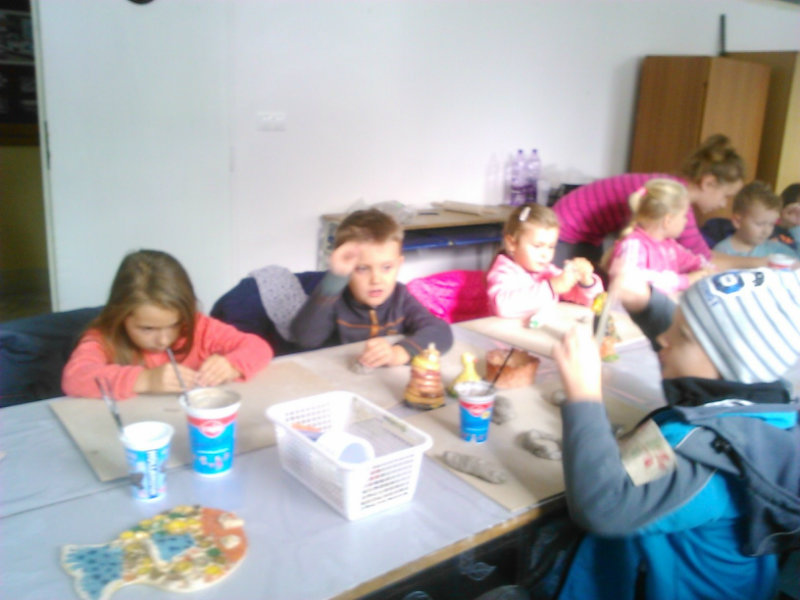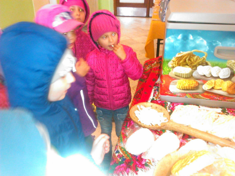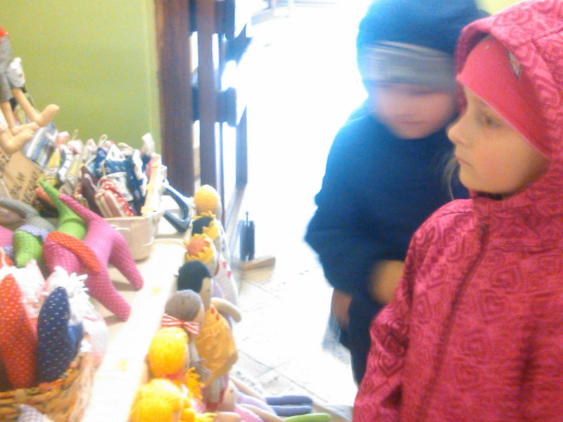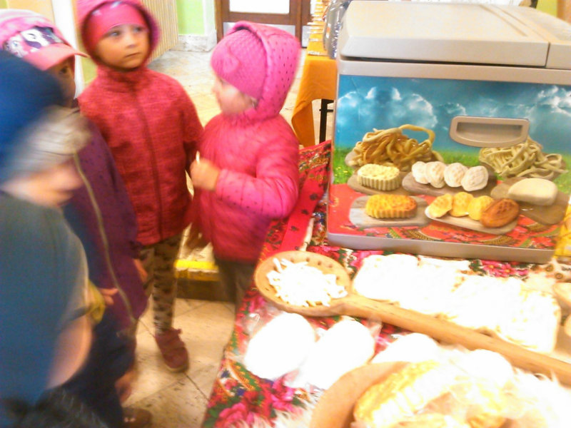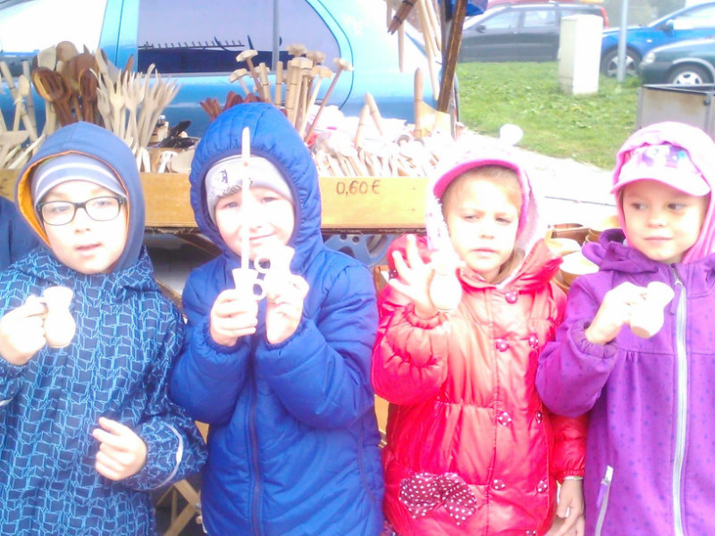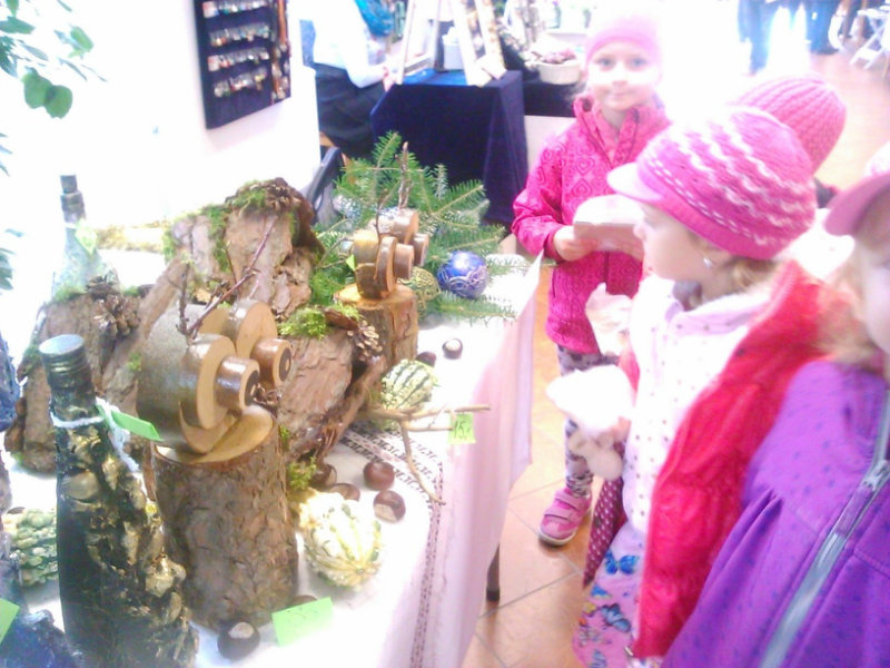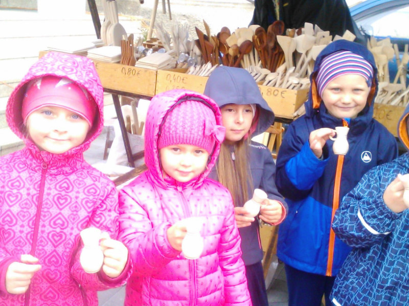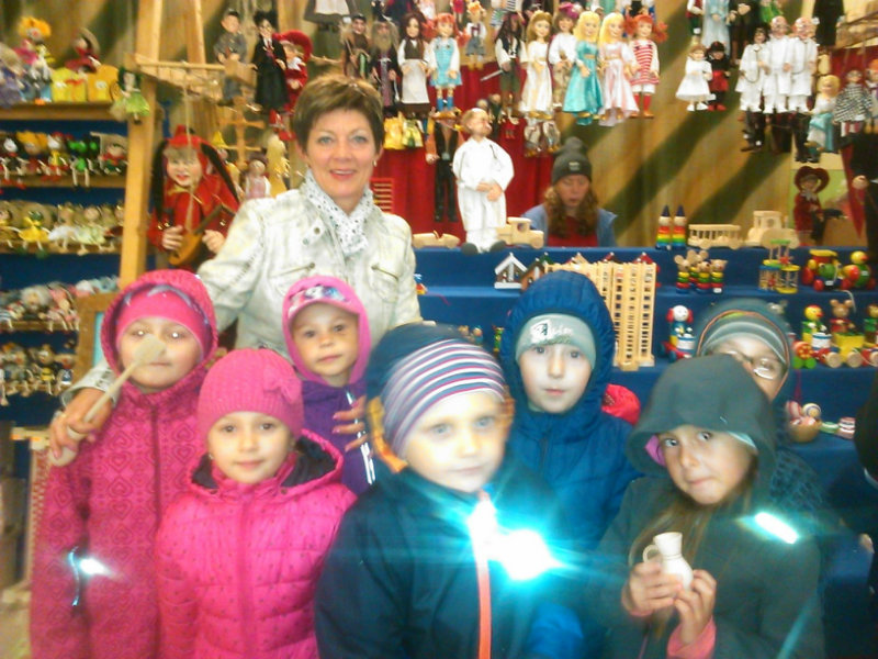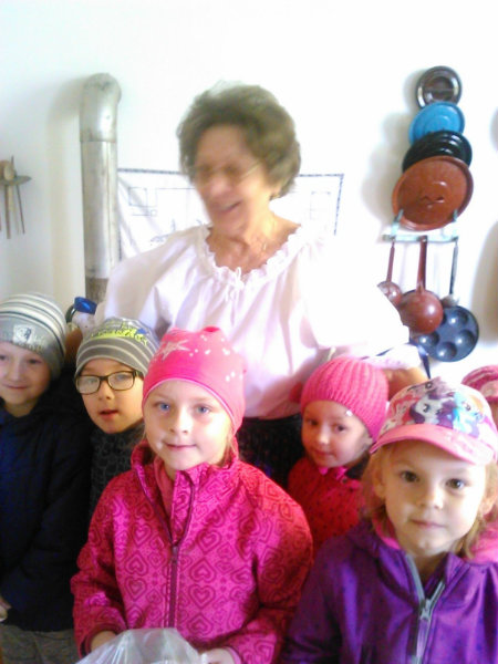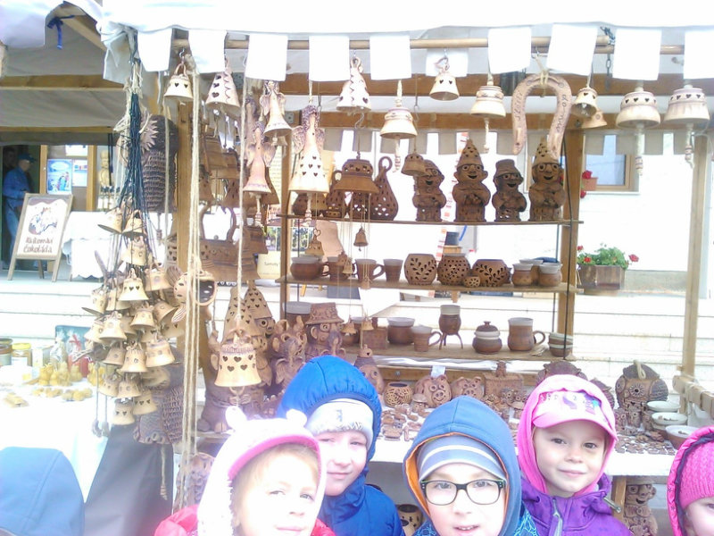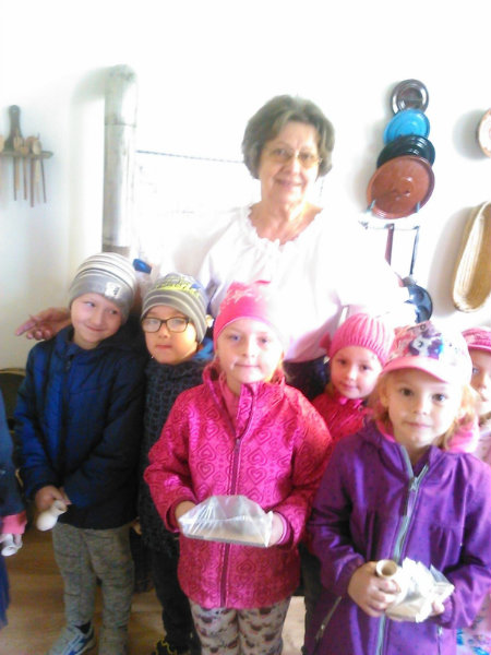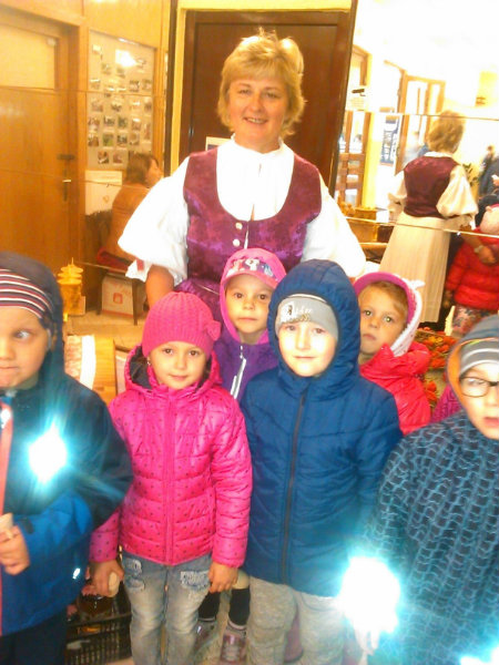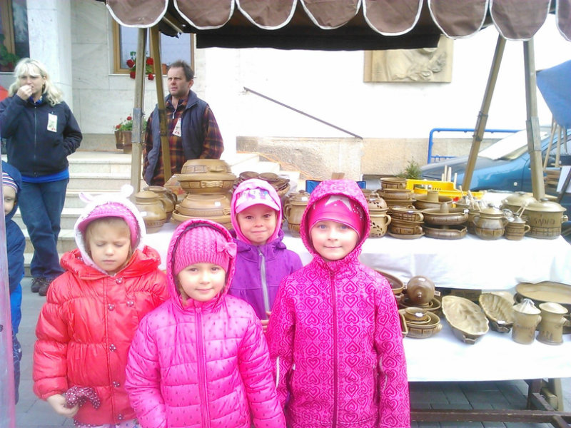Staroturiansky remeselnícky jarmok: Deti pozorovali v jednotlivých stánkoch rôzny sortiment a zároveň šikovnosť našich remeselníkov. Rezbár nám predviedol výrobky z dreva - vidly, hrable, riad, príbor, misky, džbány, ukázal nám, ako vyrába varešku ostrým, zahnutým nožíkom. U medovnikárky sme sa dozvedeli recept na mäkký a sladký medovník . Obdivovali sme rôzne tvary -srdiečka, koníky, bábiky, domčeky. Medovníky boli krásne zdobené a nádherne voňali. Už sa nečudujeme, že ježibaba zlákala vôňou do lesa Janíčka a Marienku. V ďalšom stánku deti obdivovali handrové hračky. Povedali sme si, že kedysi boli len hračky, ktoré dokázali vyrobiť rodičia. Mamičky deťom hračky šili. Vedľa bol stánok s drevenými hračkami. Tu sme si poobzerali hračky, ktoré vyrábali oteckovia a deduškovia - koníky vláčiky, postieľky pre bábiky. Viseli tu i maňušky, s ktorými sa hrá divadlo. Neďaleko sa deti dozvedeli o význame včielok, včelár nám vysvetlil, ako včielky nosia do úľa peľ na nožičkách v podobe guliek. Ako vyrábajú med a dal nám ho chutnať na oplátku. Teta nám ukázala výrobky z plastu - sviečky najrozličnejších tvarov. Pekárka nás ponúkla chutnými koláčikmi a pagáčmi. Korenárka mala plný pult vreciek s rôznym voňavým korením, ktoré sa pridáva do jedla, aby bolo chutné, voňavé a zdravé. V remeselníckej dielni sa deti zahrali na hrnčiarov a modelovali z hmoty zvieratká. Potom obdivovali šikovné ruky košikára, a jeho výrobky. Tu sme zistili z čoho a ako vzniká košík a koľko času ho trvá upliesť. Obdivovali sme umenie čipkárky. S údivom sme pozerali na veľký tkací stav, na ktorom sa tkajú koberce. Na záver si deti prezreli starodávne zariadenú izbu, v ktorej nás privítala teta v kroji. Tu ochutnali domáci koláč - štedrák, ktorý sa piekol na Vianoce a bol z orechov, maku, lekváru a tvarohu. DO MŠ si deti odniesli množstvo nových poznatkov a zážitkov.