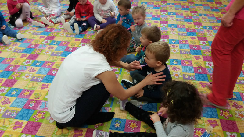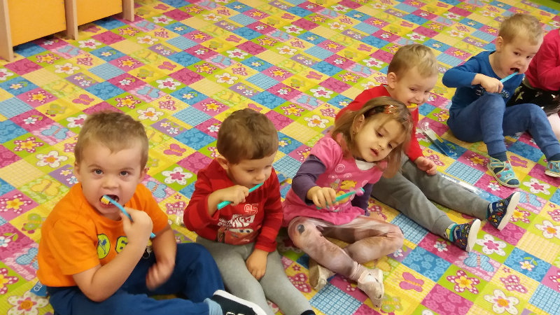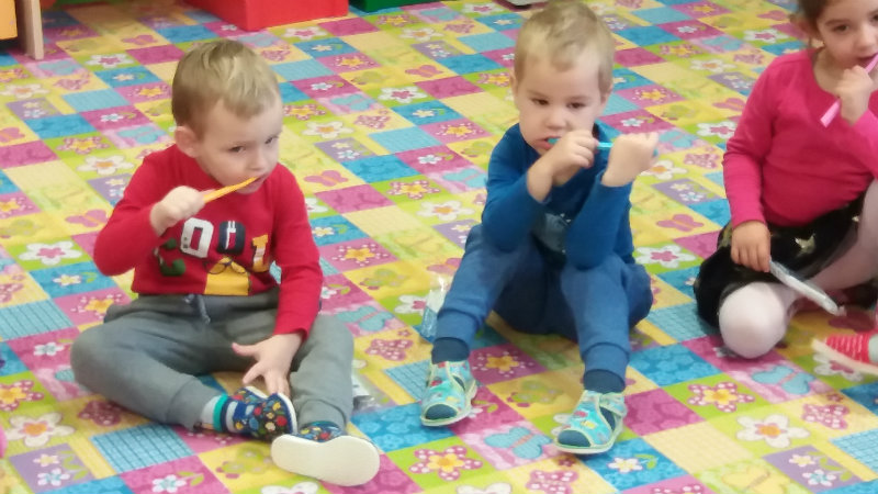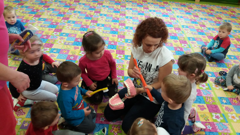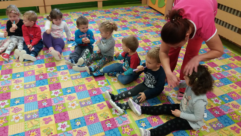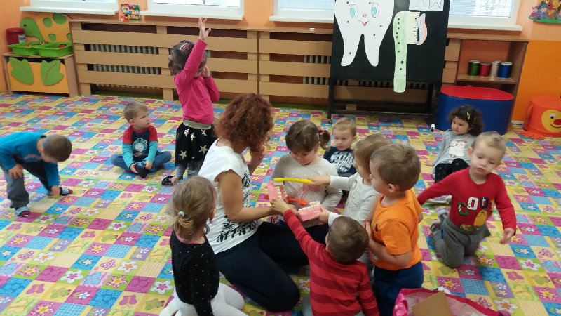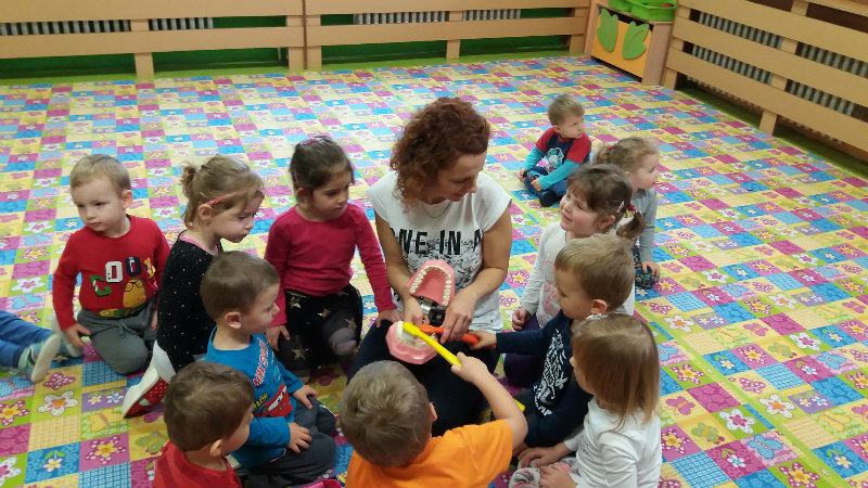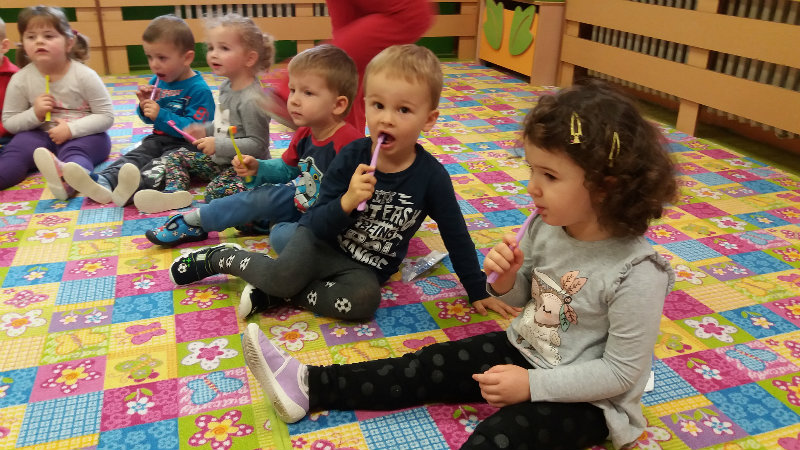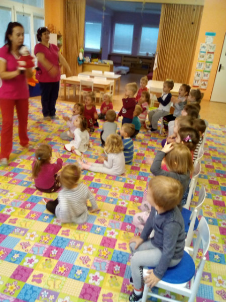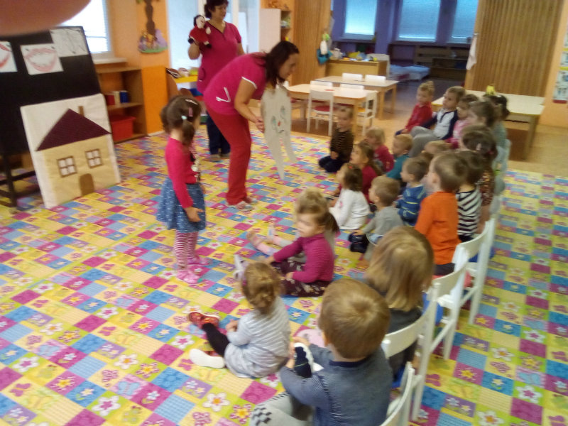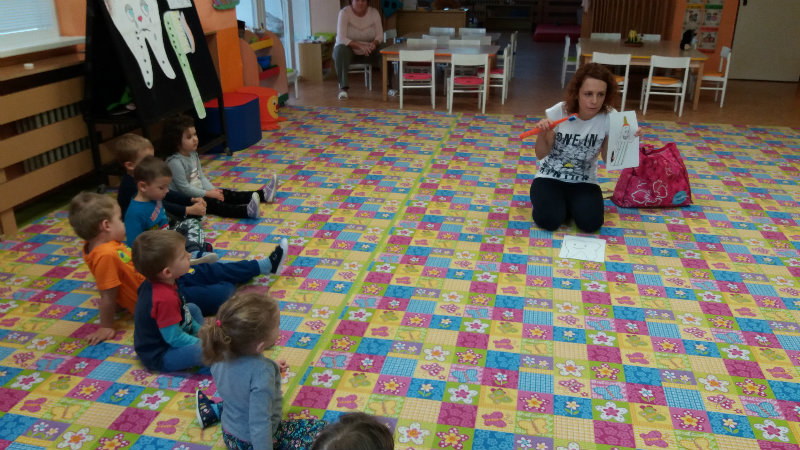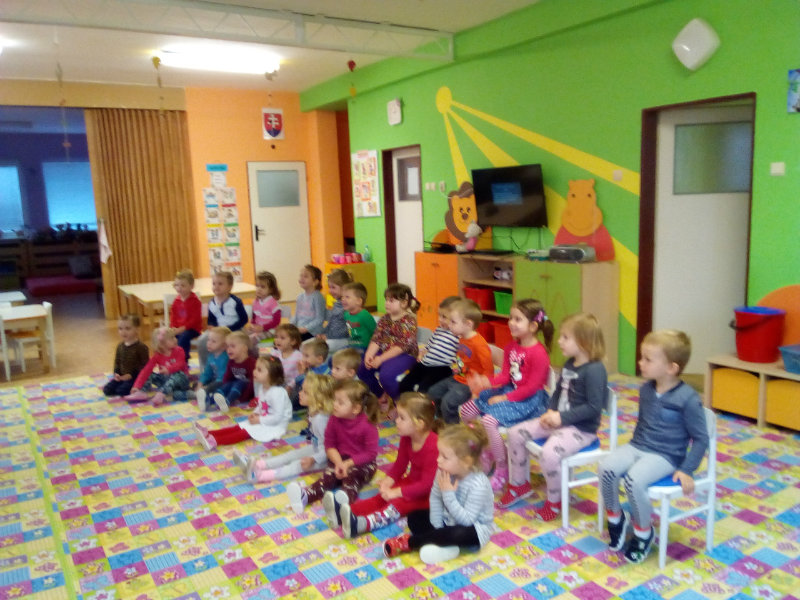 V novembri sa naši najmenší oboznámili so základom starostlivosti o zúbky prostredníctvom rôznych aktivít - beseda s dentálnou hygieničkou, divadlo o "Vlkovi, ktorý šušľal", ktoré deťom zahrali pani učiteľky, praktických ukážok, piesní,básní a hier. Zúčastnili sa na bábkovom divadle "O Guľkovi Bombuľkovi". Spoločne s deťmi z triedy č. 1 sme navštívili materské centrum "Žabka". Za túto spoluprácu ďakujeme mamičke našej Vladky, pani Ing. Marekovej, ktorá pripravila pre deti zaujímavé aktivity a občerstvenie. Deti sa na elementárnej úrovni oboznámili s jednotlivými časťami a funkciami ľudského tela a pripravujú sa na príchod Mikuláša.