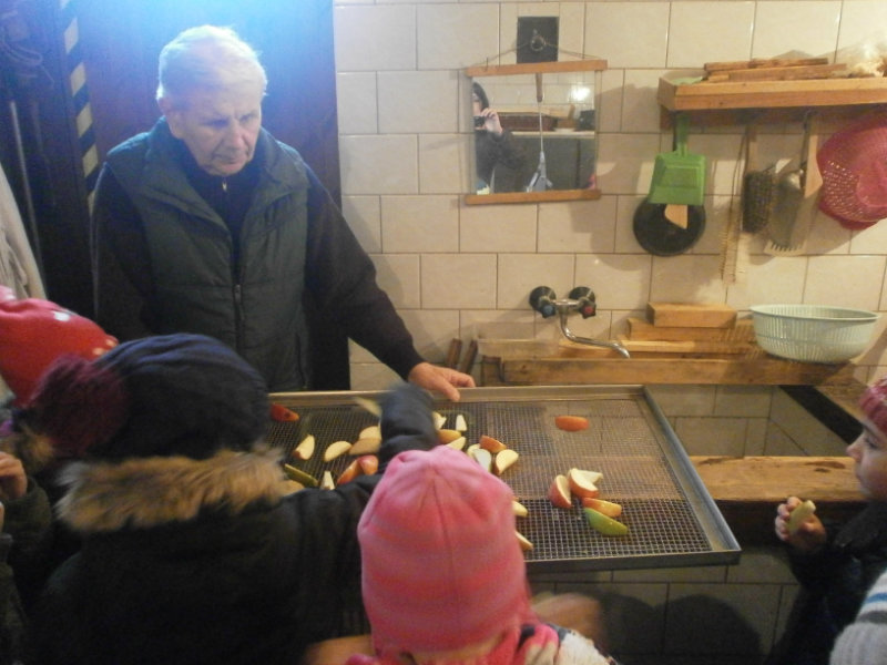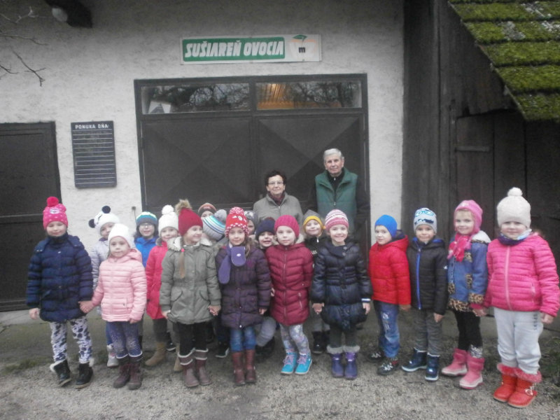 V našom zdravom novembrovom putovaní sme sa s Usilovnými včielkami vybrali na exkurziu do sušiarne ovocia a zeleniny do neďalekej Miškech Dedinky k p. Viliamovi Harušťákovi a jeho manželke, ktorí sa venujú vo svojej sušiarni sušeniu jabĺk, hrušiek, sliviek, marhúľ, broskýň, čerešien, ale taktiež i sušeniu zeleniny hlavne rajčín, cibuľky, žihľavy.