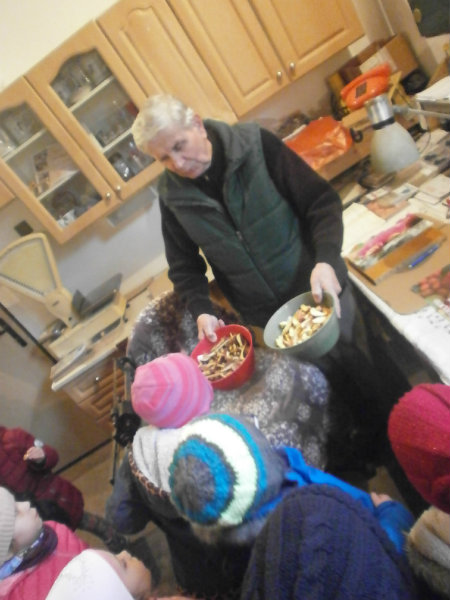 Dozvedeli sme sa o vitamínoch, ktoré sušené ovocie v sebe ukrýva, taktiež o spôsobe a postupe spracovania už spomínaných produktov. Hotové produkty sme i ochutnali a posilnili sme sa v chladnom počasí i chutným čajom.
