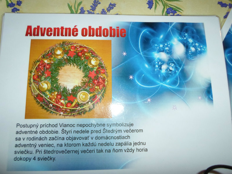 Na Slovensku sa na Vianoce, sviatky narodenia Ježiša Krista, pripravujeme už štyri týždne dopredu. Počas tohto obdobia nazývaného Advent, ktoré nám v sebe nesie posolstvo očakávania príchodu malého Ježiška, ľudia chodia do kostola, kupujú či pripravujú darčeky pre svojich blízkych, ozdobujú si svoje príbytky dekoráciami. Svoje nezastupiteľné miesto má adventný veniec z čečiny, ktorý je ozdobený štyrmi sviecami zodpovedajúcimi počtu adventných nedieľ. Umocňuje vianočnú atmosféru v období pred Štedrým dňom, či už je umiestnený v byte na stole alebo zavesený na dverách. Je znamením nádeje a holdom tomu, ktorý prichádza.