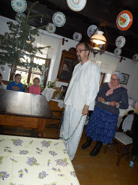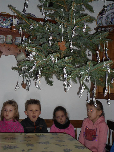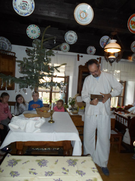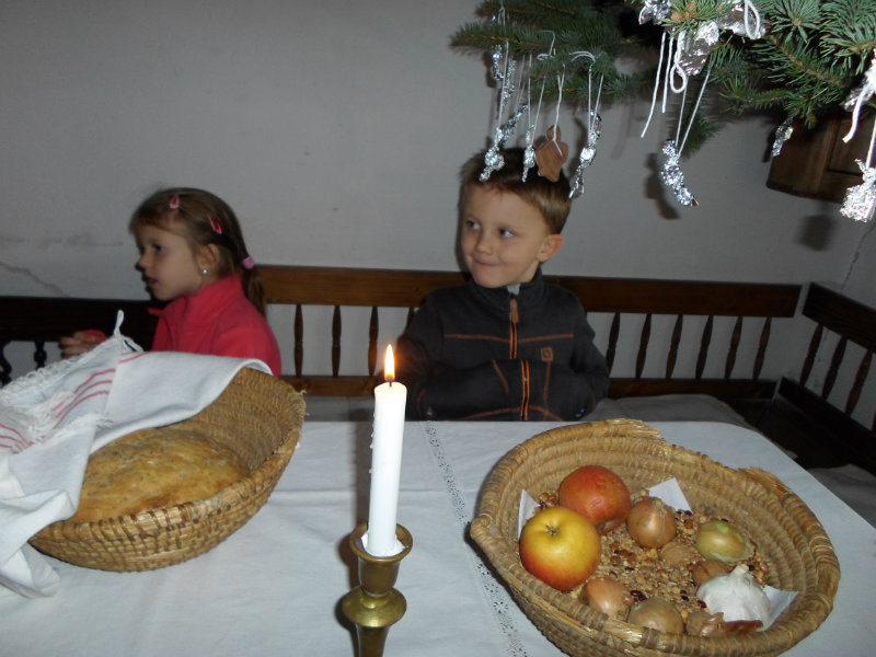 Na štedrý deň si ľudia na stôl do každého rohu položili peniaz, aby boli budúci rok bohatí. Do prostriedku vysypali zrno, aby bol nasledujúci rok úrodný. Prikryli ho najkrajším obrusom, na stôl položili ošatku ? pletený košík so zrnom, šošovicou, hrachom, cesnakom, cibuľou, orechmi, jabĺčkami, aby bol budúci roh plný hojnosti. Gazdiná postavila na stôl ošatku s čerstvým chlebom, vianočné oblátky, med, a cesnak, gazda zapálil sviečku a omotal nohy stola pevnou reťazou, aby rodina držala pokope. Stromček zavesili na strop aby nezavadzal, lebo domy boli malé. Stromček ozdobili medovníkmi, orieškami, sušenými jabĺčkami, a salónkami, ktoré si vyrobili tak, že do alobalu zabalili kockový cukor.