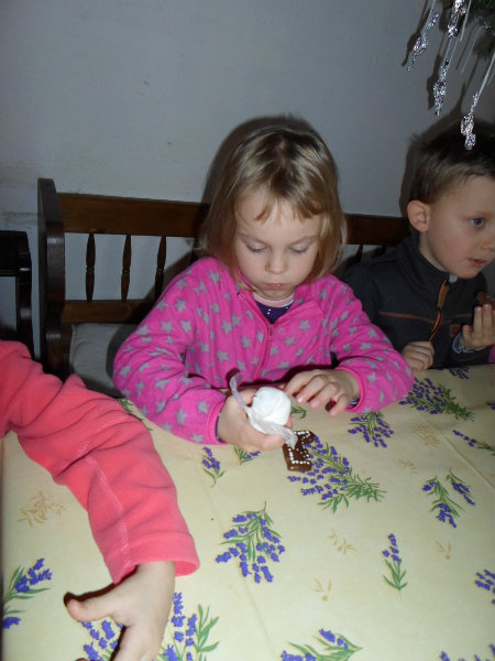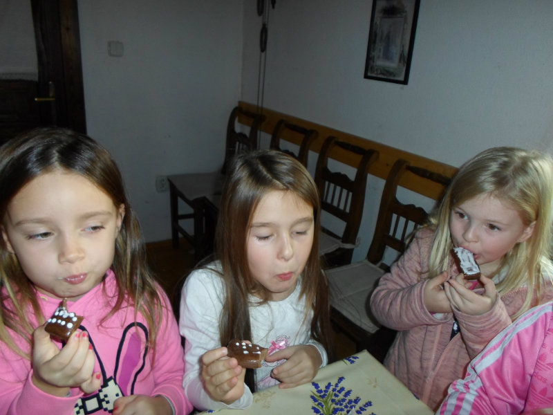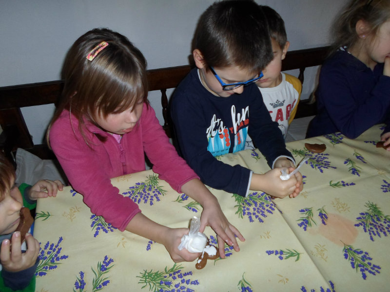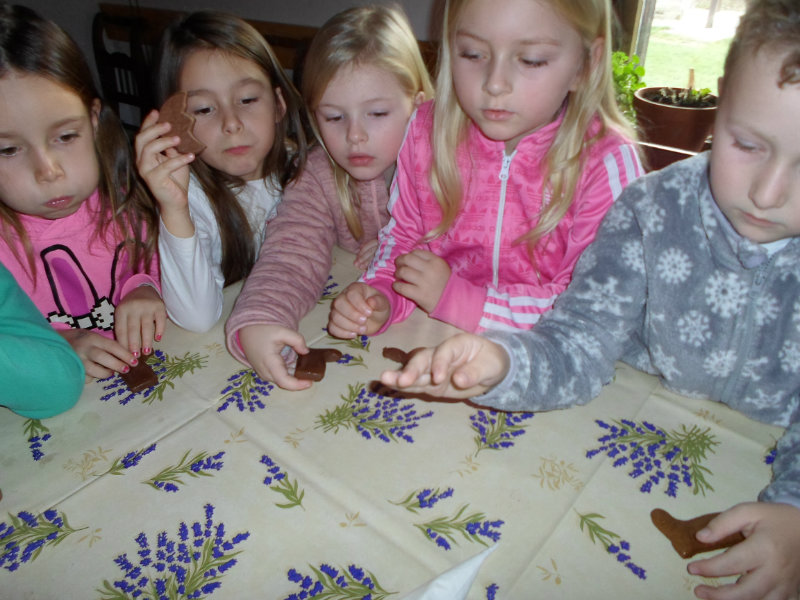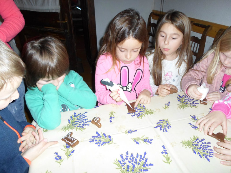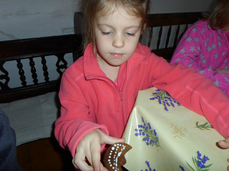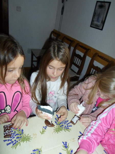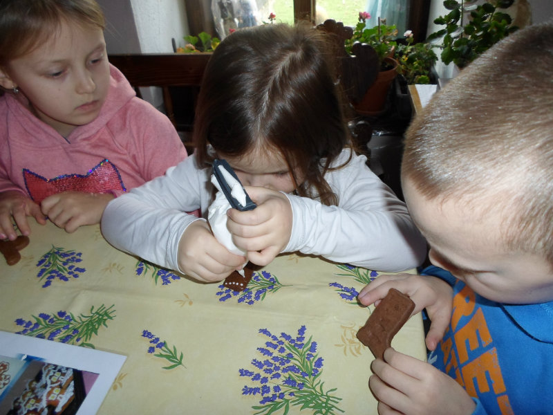 Gazdiná pred sviatkami napiekla medovníky a ozdobila ich sladkou polevou. Aj my sme si vyskúšali vyzdobiť svoje medovníky a hneď sme ochutnali, či je poleva dosť sladká.