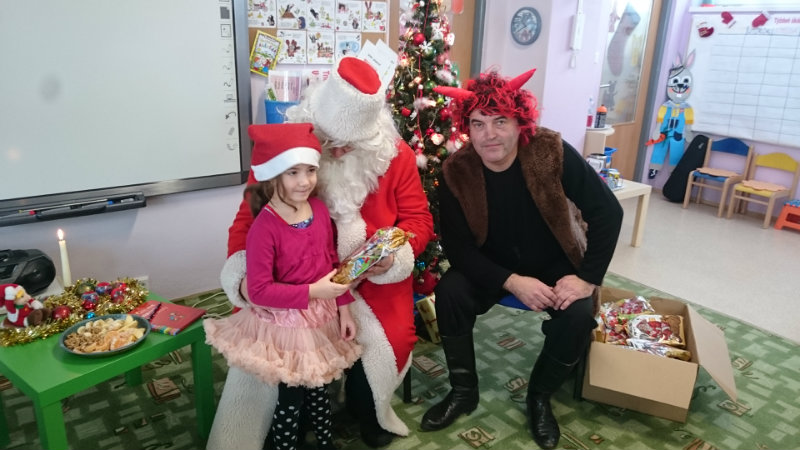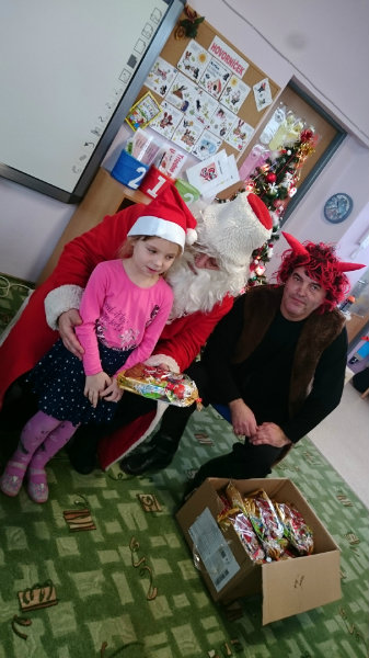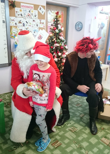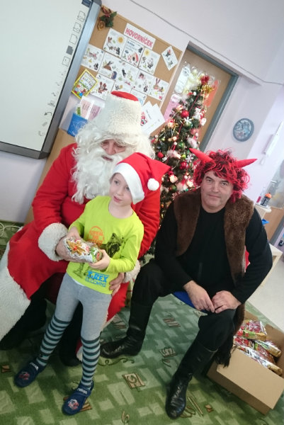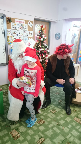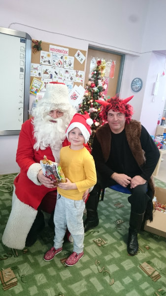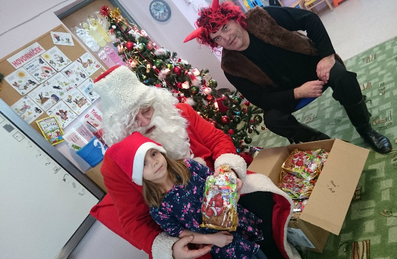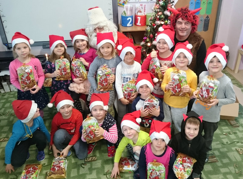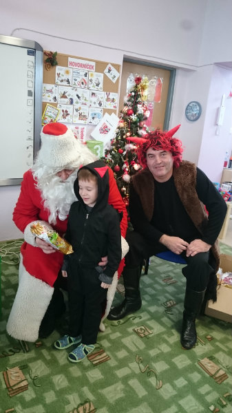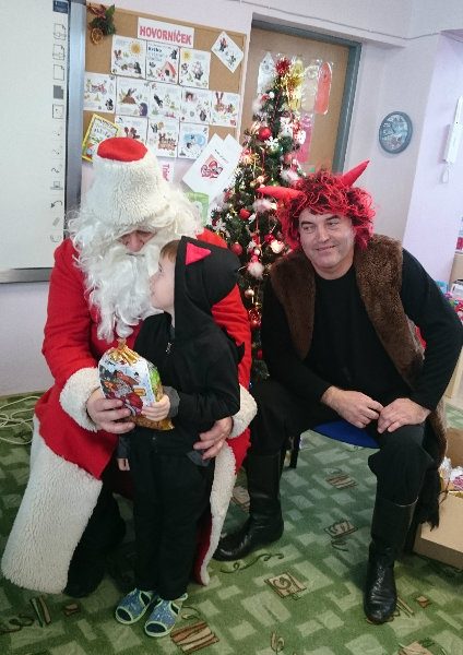 Predškolácke Usilovné včielky z triedy č.1 privítali Mikuláša s čertom v MŠ na Komenského ulici 4. decembra 2017 peknými básničkami a pesničkami. Odmenou im boli sladké balíčky.