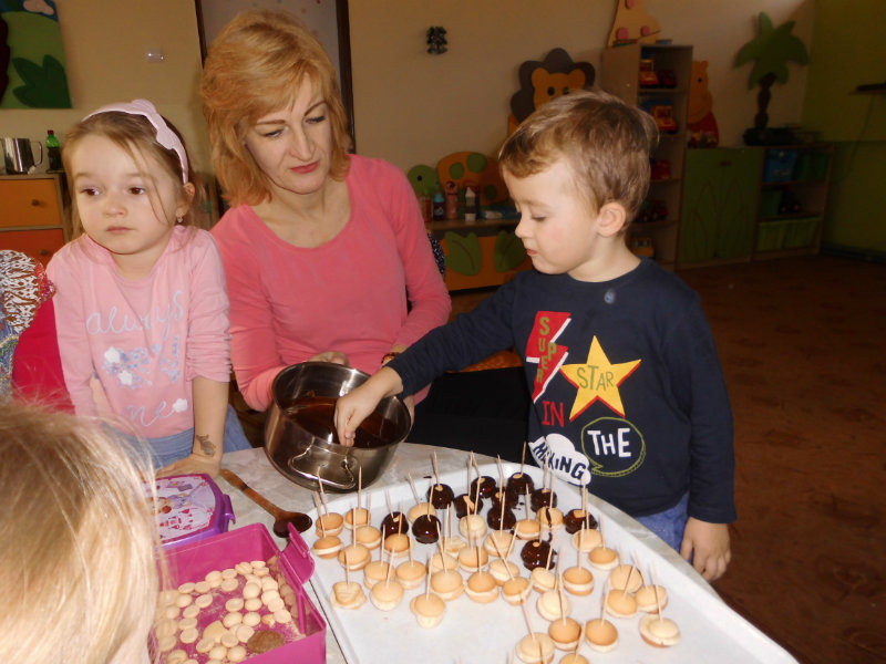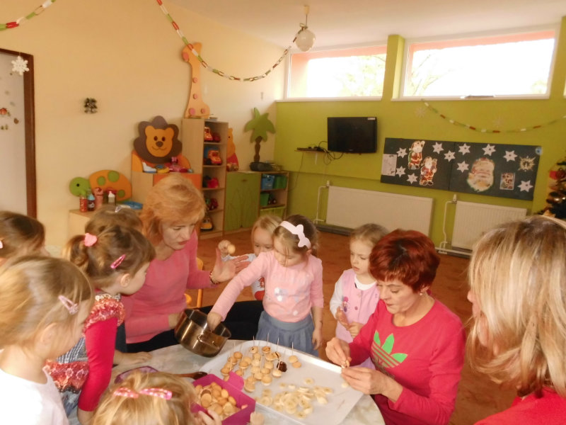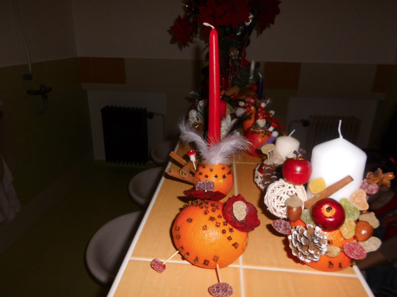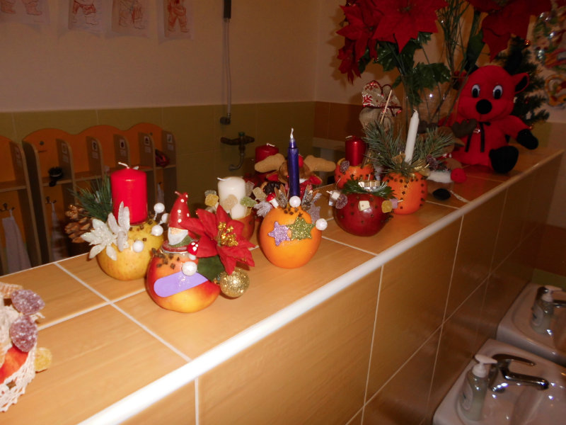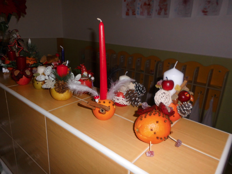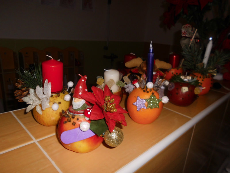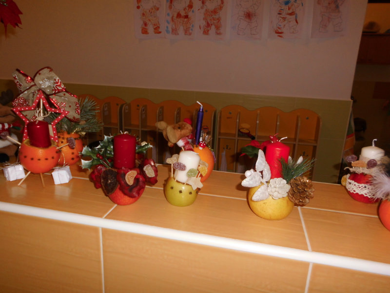 Toto si povedali deti a p.učiteľky v 1.triede, vyhrnuli si rukáviky a šikovné ručičky "napiekli" čokoládové koláčiky.Práca sa im vydarila a odmenou im bola čokoládová nádielka, ktorá zostala v hrnci - všetku sme ju vylízali. Hostina je pripravená, môžeme pozvať rodičov na vianočnú besiedku. Pripravili sme si krásny program plný kolied, piesní a tancov. A potom, hor sa do práce. Vyrobili sme ovocné svietniky, ktoré budú zdobiť ich vianočné príbytky. "Na zdravie!" sme si nakoniec pripili jablčným džúsom.
