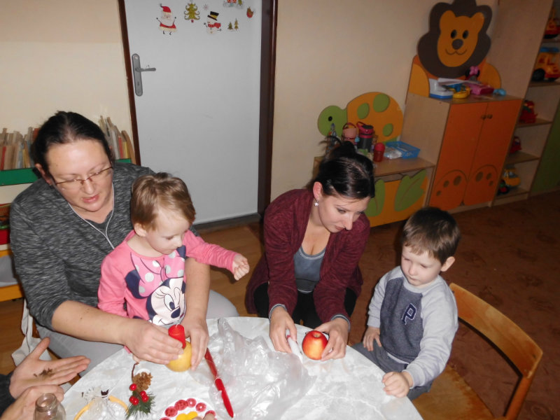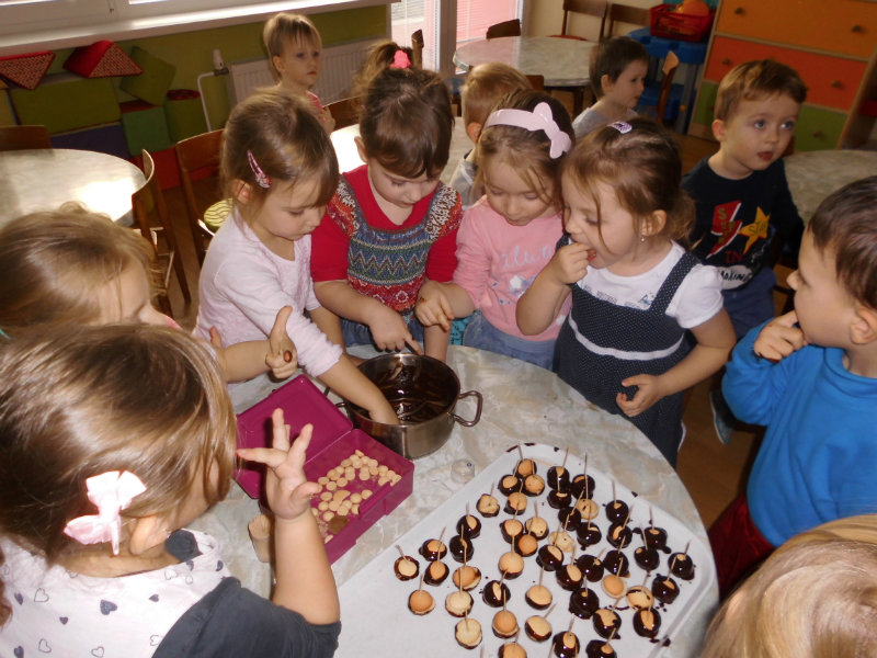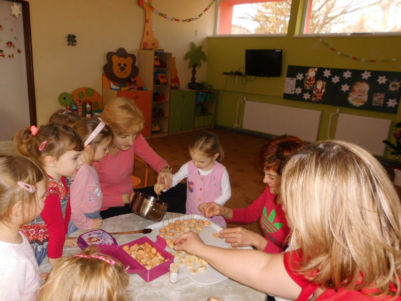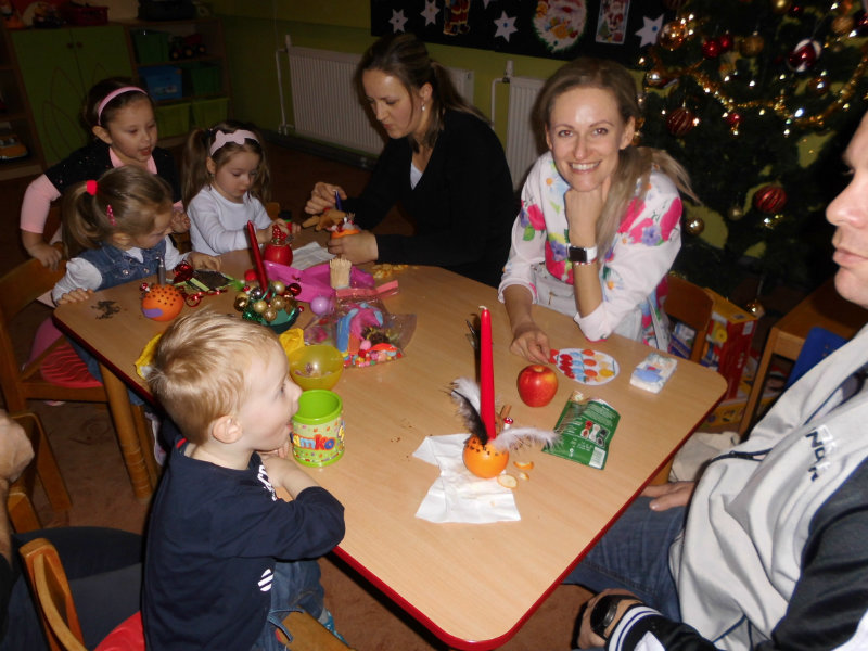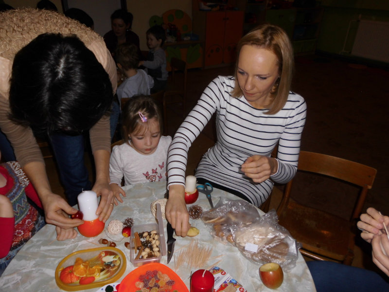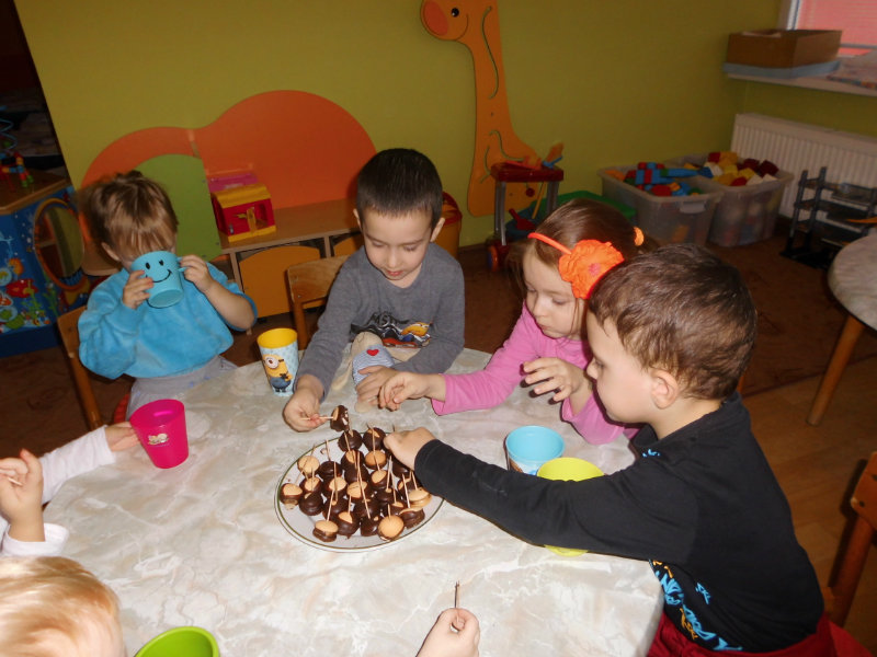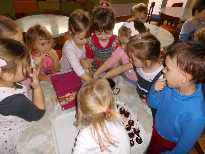 Toto si povedali deti a p.učiteľky v 1.triede, vyhrnuli si rukáviky a šikovné ručičky "napiekli" čokoládové koláčiky.Práca sa im vydarila a odmenou im bola čokoládová nádielka, ktorá zostala v hrnci - všetku sme ju vylízali. Hostina je pripravená, môžeme pozvať rodičov na vianočnú besiedku. Pripravili sme si krásny program plný kolied, piesní a tancov. A potom, hor sa do práce. Vyrobili sme ovocné svietniky, ktoré budú zdobiť ich vianočné príbytky. "Na zdravie!" sme si nakoniec pripili jablčným džúsom.