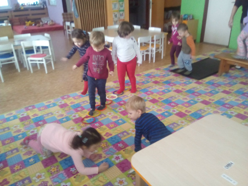 Deti sa oboznámili s ročným obdobím, so starostlivosťou o zvieratká v zime, naučili sa nové hry, riekanky a piesne o zime a o zvieratkách. Pri cvičení deti prekonávali prekážky ako zvieratká v lese, zhotovili spoločne koláž - maľovali, lepili, odtláčali.Tešili sme sa z nových hračiek, ktoré nám nechal pod stromčekom Ježiško. Na dvore sme postavili spoločne snehuliaka, z čoho mali veľkú radosť. Oslávili sme ďalšie narodeniny nášho kamaráta Marka, ktorý priniesol kamarátom dobroty.