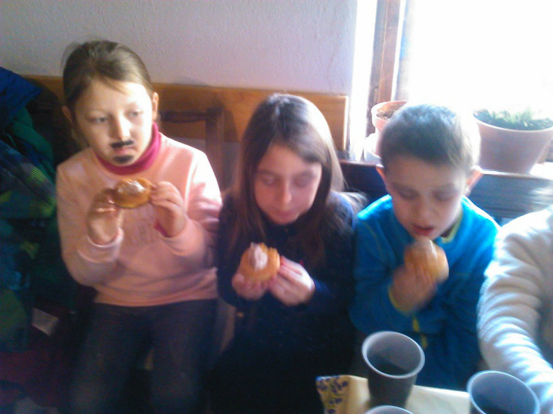 Na Gazdovskom sa tradície prežívajú tak, ako kedysi, preto sme boli zvedaví, čo nové sa dozvieme o fašiangovom období. Už nás čakali dievčence v krojoch, s gazdom i gazdinou a dva verné strážne psy. Z kuchyne sa šírila príjemná sladká vôňa šišiek. Keď sme sa usadili, v nám už známej komôrke pri krbe, v ktorom praskalo drevo, gazda nás privítal a vysvetlil nám, čo sú to Fašiangy. Fašiangy sú doba od Troch kráľov do Popolcovej stredy. Najznámejšie a zároveň najveselšie sú posledné dni fašiangu, spojené s radovánkami a hodovaním. Fašiangové tradície, spojené so sprievodmi maskovaných ľudí, boli akýmsi prechodom medzi Vianocami a Veľkonočnými sviatkami. Po ňom nasleduje čas štyridsaťdňového pôstu. Naši predkovia si na bujaré fašiangové zábavy veľmi potrpeli. Vtedy však býval fašiang dosť hlučnejší a odviazanejší než dnes. Každý sa snažil užiť si fašiangové zábavy ako najlepšie vedel.