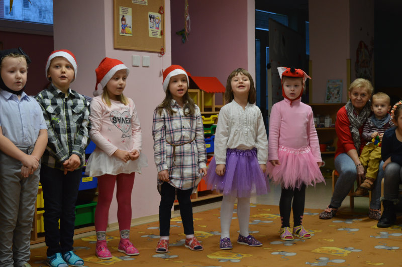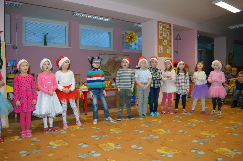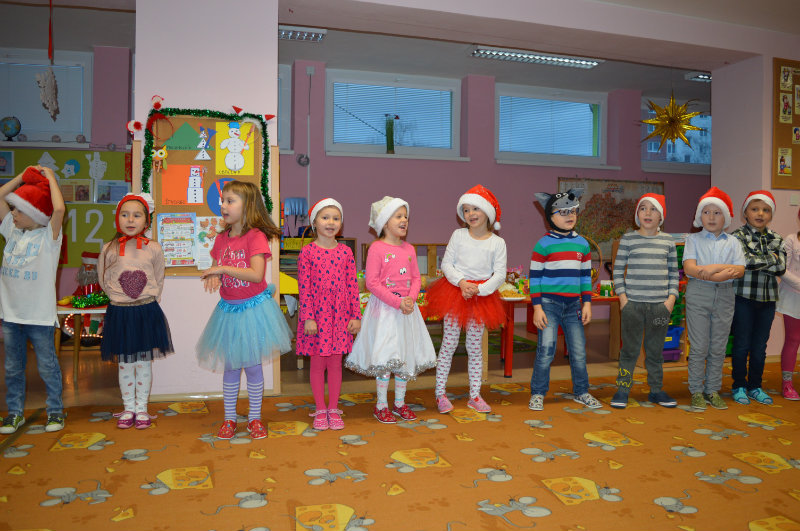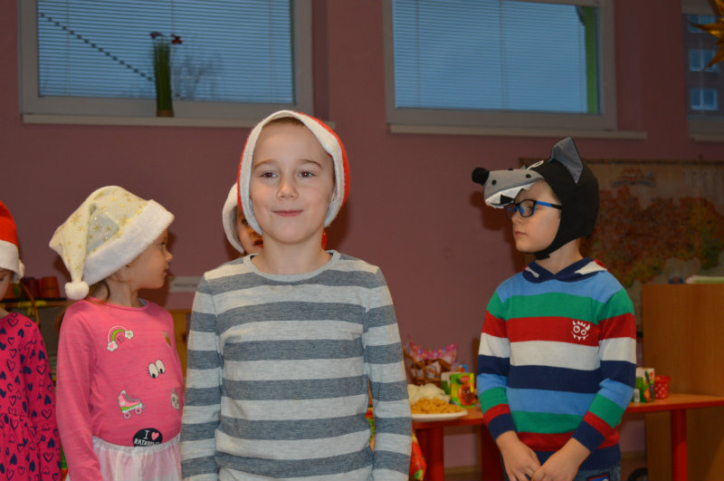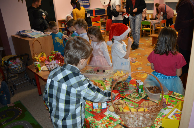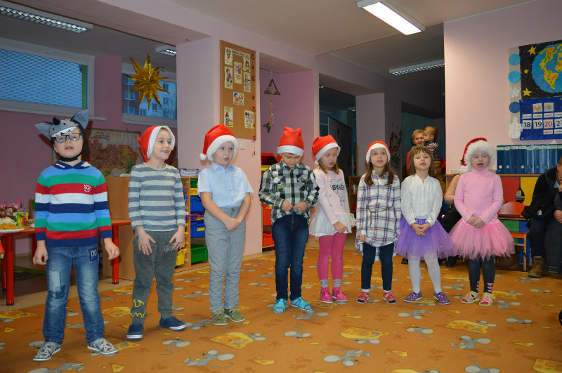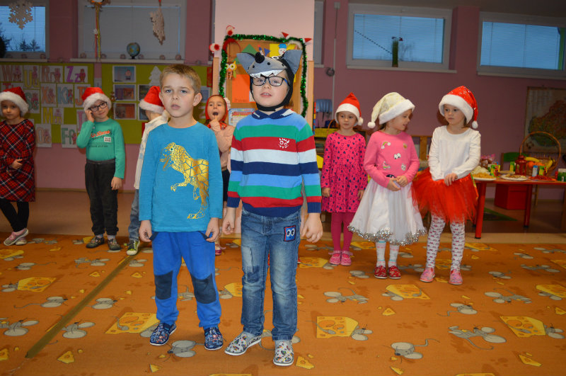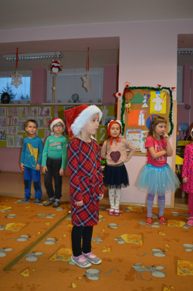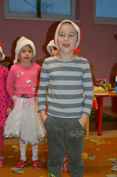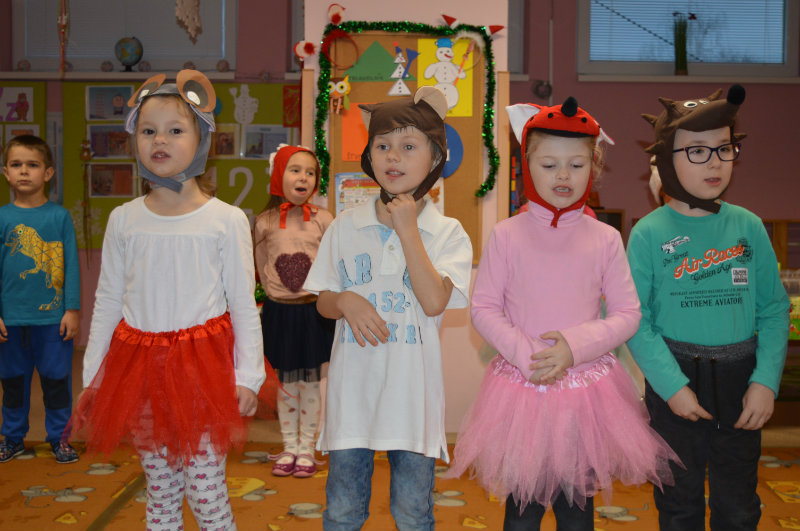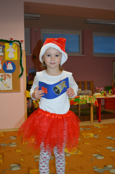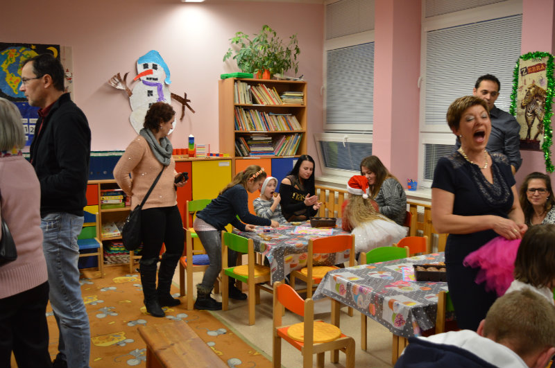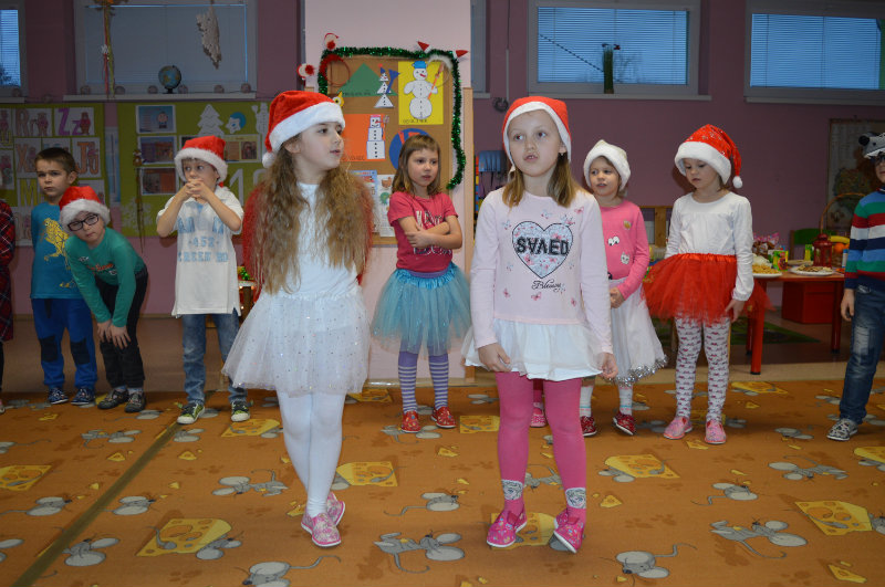 S deťmi sme si pripravili vianočný program, zimné básne a piesne o snehuliakoch, vtáčikoch, sánkovačke a guľovačke, divadielka o zvieratkách i o Červenej čiapočke, koledy i tanec. Rodičom sme vyrobili vianočné pozdravy s kaprom na vrchnej strane, blahoželaním a zvončekom vo vnútri, lepením a strihaním. Spoločne sme vyzdobili triedu, ozdobili stromček, rozsvietili sviečky, vyparádili sme sa a tešili sa na rodičov. Starostlivé mamičky nám pripravili vianočné pohostenie. Medovníčky rôznych tvarov, linecké koláčiky s lekvárom, buchtičky, piškóty s banánom v čokoláde, slané tyčinky a najrozličnejšie voňavé dobroty. Keď prišli rodičia, s radosťou a odvážne sme im zaspievali, zatancovali, zarecitovali a vytvorili príjemnú vianočnú náladu. Po vystúpení sme rozdali pozdravy a pobozkali rodičov. Potom sme spoločne zdobili medovníky a zároveň aj ochutnávali. Zábava pokračovala tancovaním, hodovaním, hrami a rozhovormi. Na záver sme si popriali krásne, veselé a šťastné Vianoce.