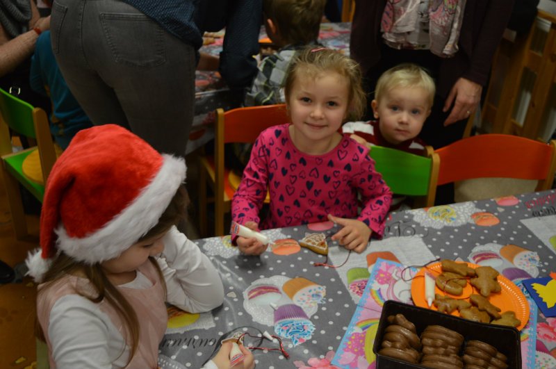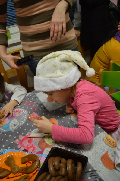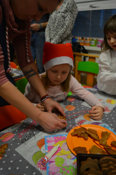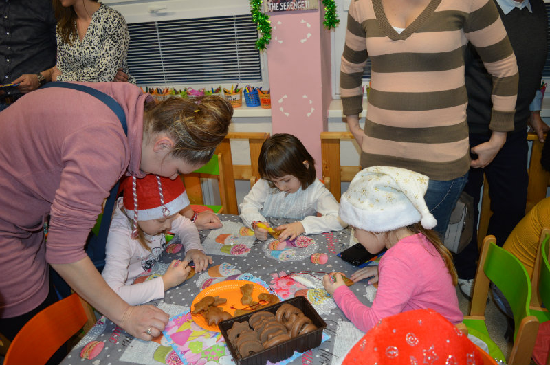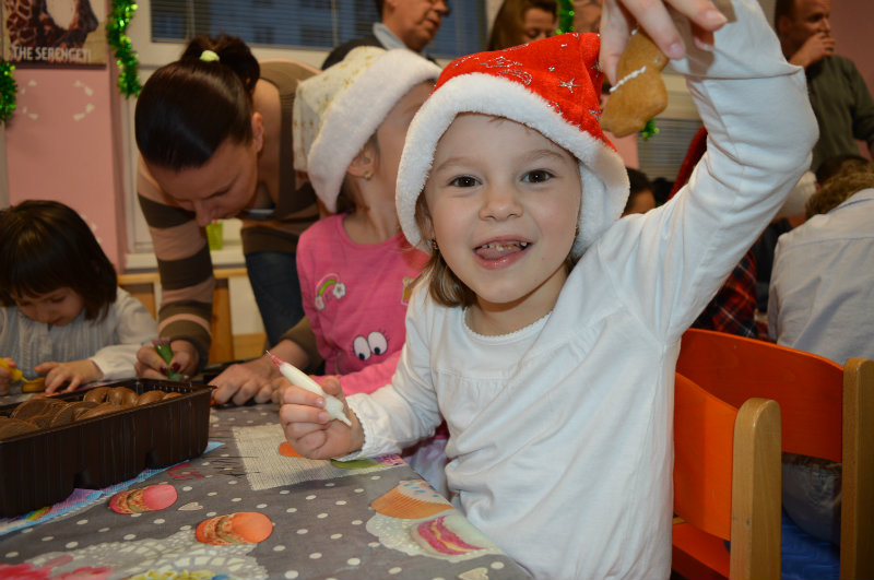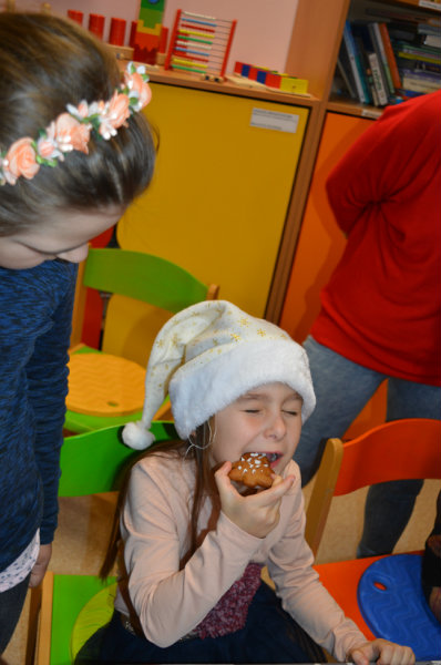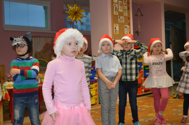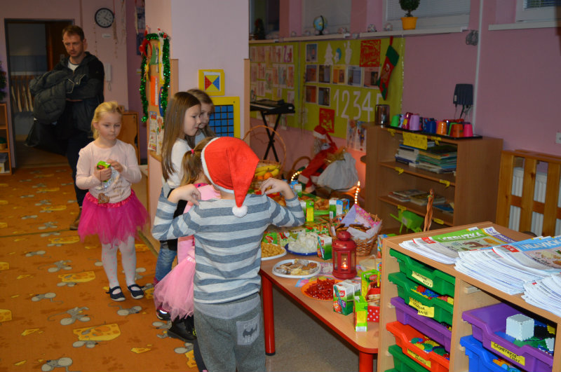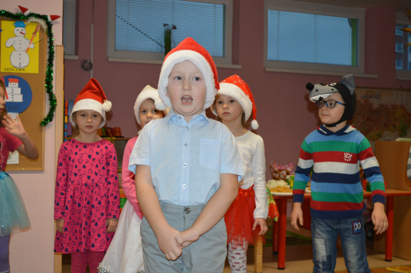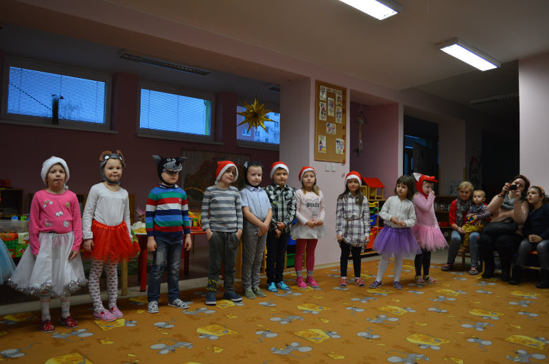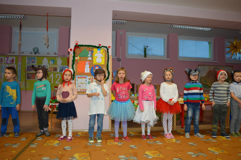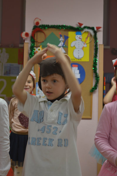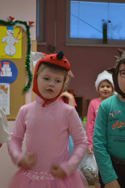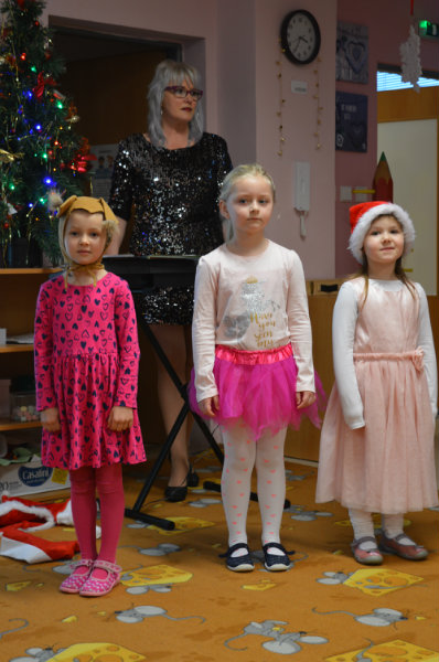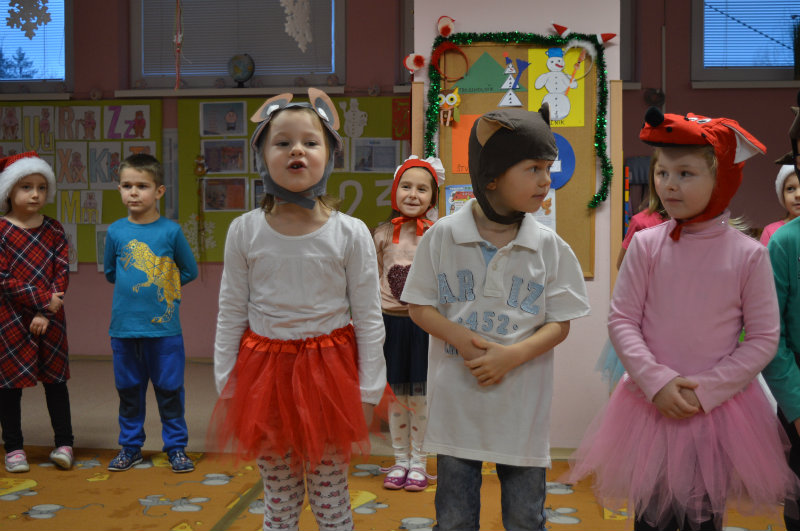 S deťmi sme si pripravili vianočný program, zimné básne a piesne o snehuliakoch, vtáčikoch, sánkovačke a guľovačke, divadielka o zvieratkách i o Červenej čiapočke, koledy i tanec. Rodičom sme vyrobili vianočné pozdravy s kaprom na vrchnej strane, blahoželaním a zvončekom vo vnútri, lepením a strihaním. Spoločne sme vyzdobili triedu, ozdobili stromček, rozsvietili sviečky, vyparádili sme sa a tešili sa na rodičov. Starostlivé mamičky nám pripravili vianočné pohostenie. Medovníčky rôznych tvarov, linecké koláčiky s lekvárom, buchtičky, piškóty s banánom v čokoláde, slané tyčinky a najrozličnejšie voňavé dobroty. Keď prišli rodičia, s radosťou a odvážne sme im zaspievali, zatancovali, zarecitovali a vytvorili príjemnú vianočnú náladu. Po vystúpení sme rozdali pozdravy a pobozkali rodičov. Potom sme spoločne zdobili medovníky a zároveň aj ochutnávali. Zábava pokračovala tancovaním, hodovaním, hrami a rozhovormi. Na záver sme si popriali krásne, veselé a šťastné Vianoce.