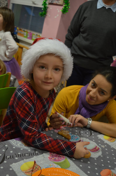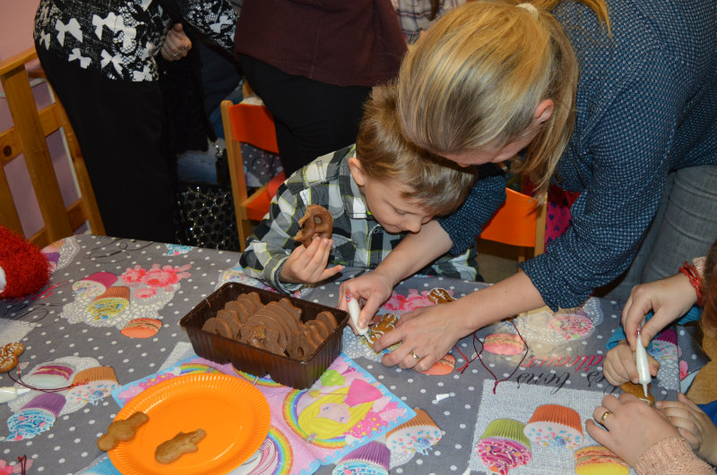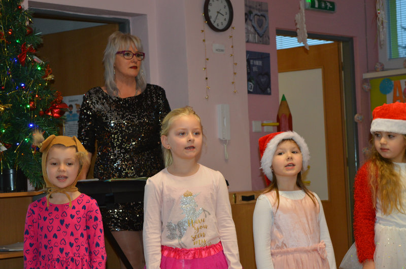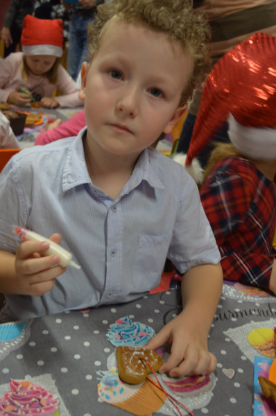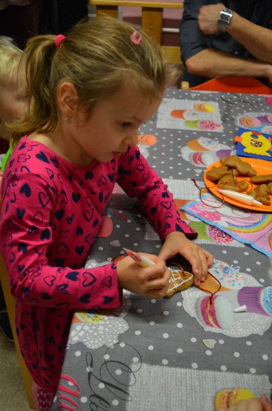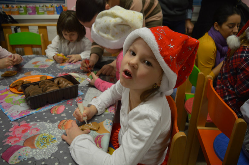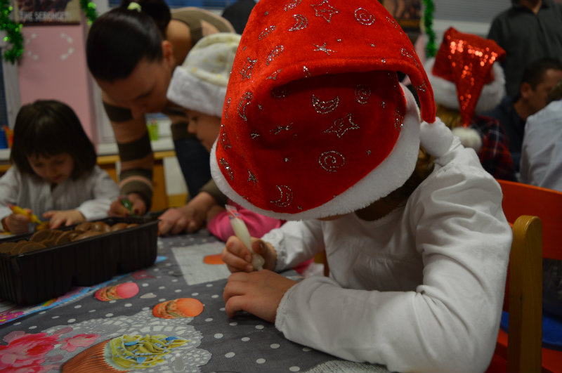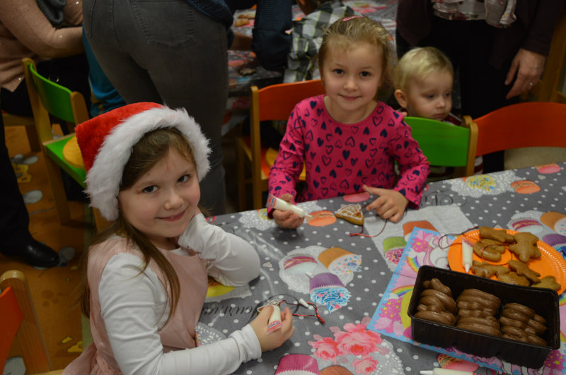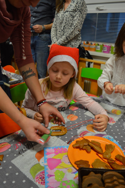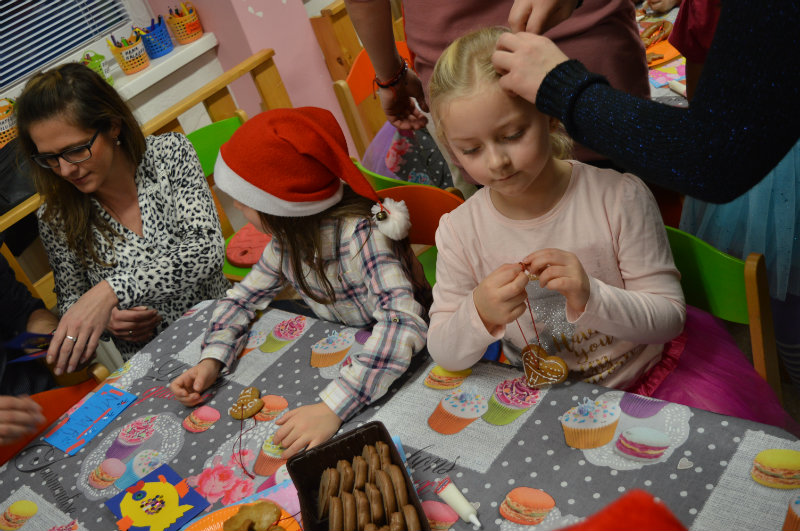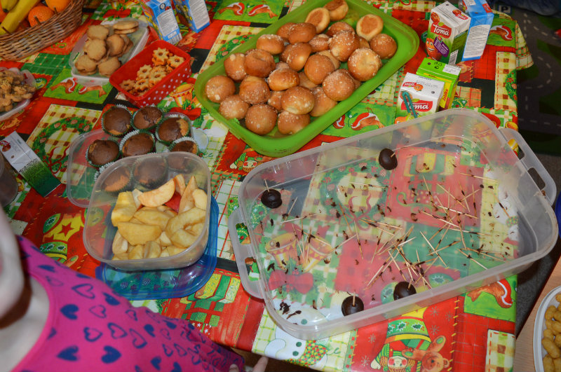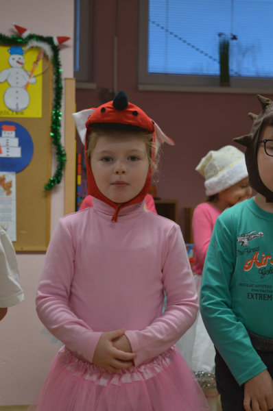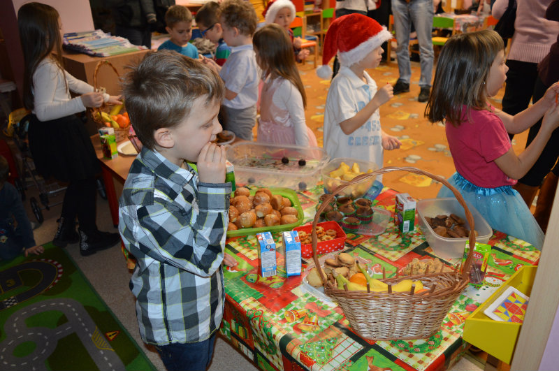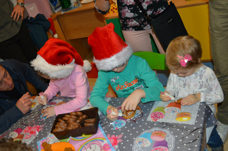 S deťmi sme si pripravili vianočný program, zimné básne a piesne o snehuliakoch, vtáčikoch, sánkovačke a guľovačke, divadielka o zvieratkách i o Červenej čiapočke, koledy i tanec. Rodičom sme vyrobili vianočné pozdravy s kaprom na vrchnej strane, blahoželaním a zvončekom vo vnútri, lepením a strihaním. Spoločne sme vyzdobili triedu, ozdobili stromček, rozsvietili sviečky, vyparádili sme sa a tešili sa na rodičov. Starostlivé mamičky nám pripravili vianočné pohostenie. Medovníčky rôznych tvarov, linecké koláčiky s lekvárom, buchtičky, piškóty s banánom v čokoláde, slané tyčinky a najrozličnejšie voňavé dobroty. Keď prišli rodičia, s radosťou a odvážne sme im zaspievali, zatancovali, zarecitovali a vytvorili príjemnú vianočnú náladu. Po vystúpení sme rozdali pozdravy a pobozkali rodičov. Potom sme spoločne zdobili medovníky a zároveň aj ochutnávali. Zábava pokračovala tancovaním, hodovaním, hrami a rozhovormi. Na záver sme si popriali krásne, veselé a šťastné Vianoce.